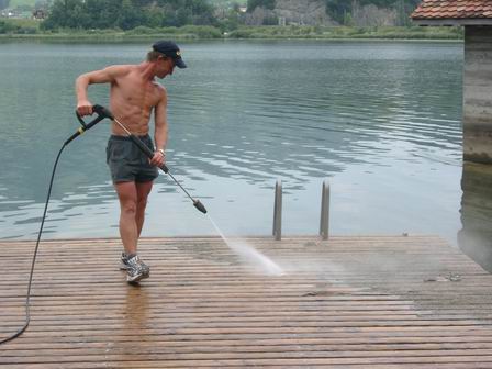 Team und ich ganztags mit Putz- und Reparaturarbeiten in der Badanlage