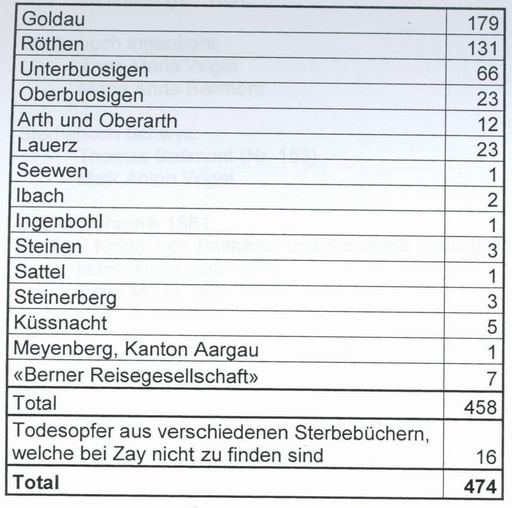 Opferzahl nachgewiesenermassen um 16 Personen erhöht. Das zu Seewen