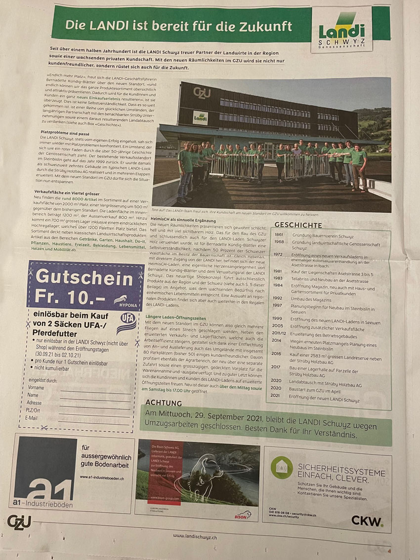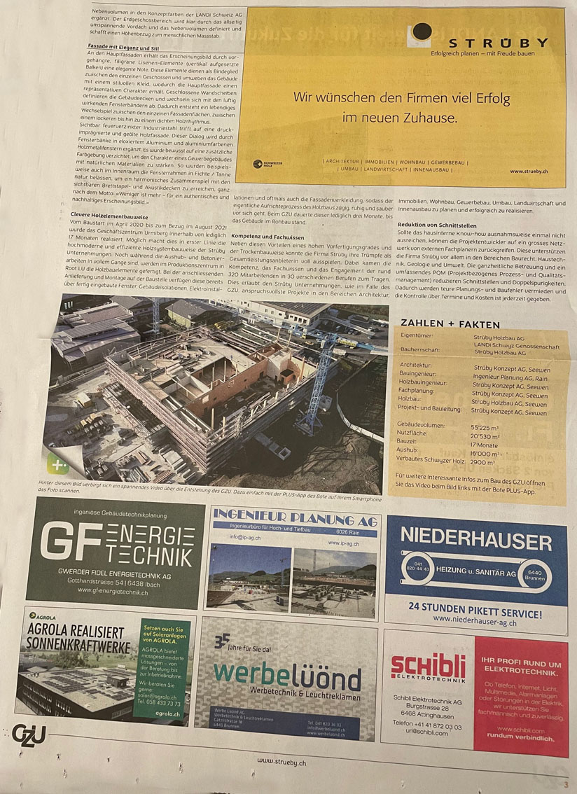 Der 'Bote' berichtete am 4. Oktober 2021 wie folgt über die Eröffnung des GZU:
