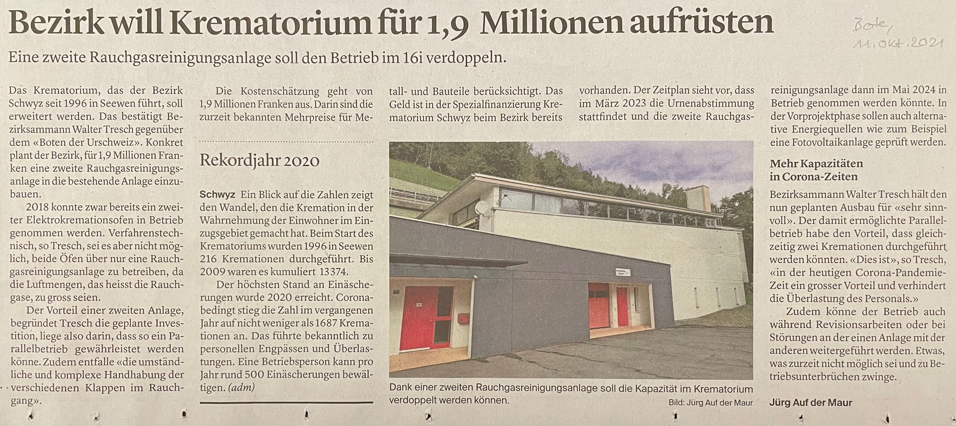 23.10.2021 Krematoriumleistung soll verdoppelt werden