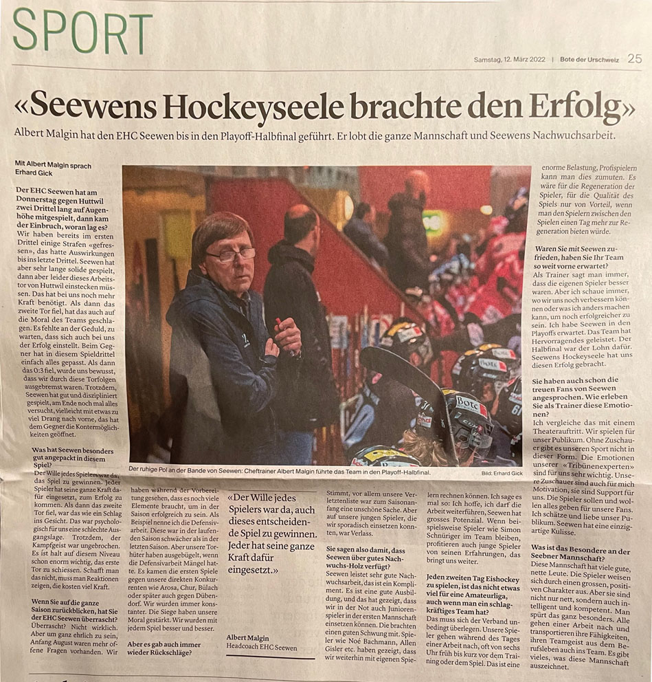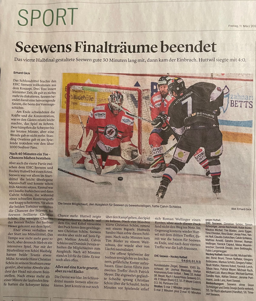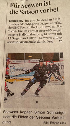 Der dorfgrösste Verein, der EHC Seewen, gehört zu den top-Amateurvereinen in der Schweiz. Beinahe schaffte es die erste Mannschaft der MySports-League in die nächsthöhere Klasse. Doch es hat nicht sein sollen...