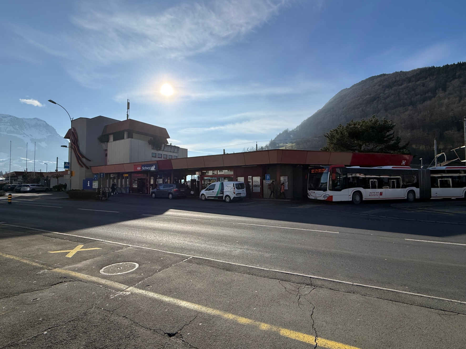1967 malte die Seebner Bevölkerung das damalige Bahnhofgebäude neu an. Im Rahmen des 750-Jahr-Jubiläums der Existenz von 'Seewa' verschönerte die Dorfgemeinschaft die Fassade 'ihres' Bahngebäudes. Damals wurde kurz der Bahnhof von SCHWYZ in SEEWEN 'umgetauft'. Noch heute wird über den (falschen) Bahnhofname diskutiert...