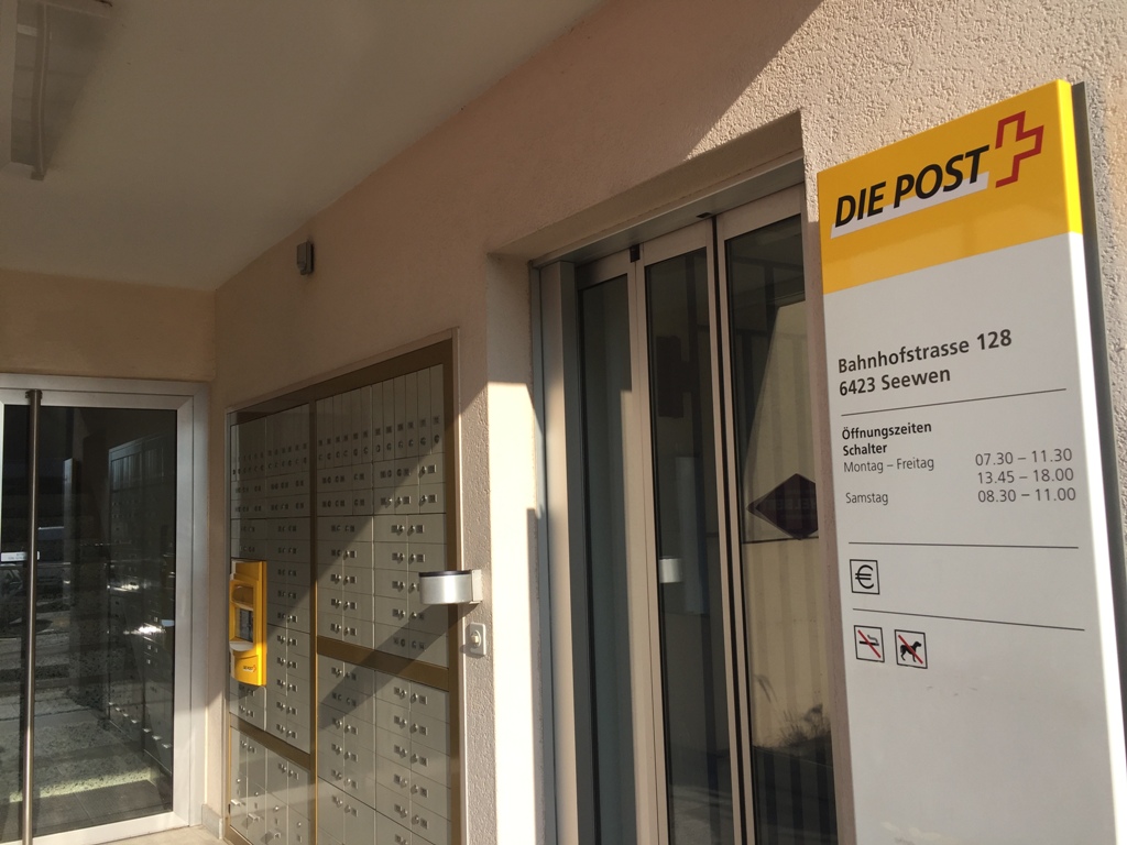 p. Am letzten Mittwoch (26. Oktober 2016) schreckte die schweizerische Post mit der Meldung auf, in den nächsten vier Jahren bis zu 600 Poststellen im ganzen Lande zu schliessen. Welche Stellen davon betroffen sein werden, darüber schweigen die Verantwortlichen - noch. Doch es ist ein offenes Geheimnis, dass auch die Filiale in Seewen zu den möglichen ‚Opfern‘ gehören wird. Denn schon vor drei Jahren war darüber diskutiert worden, die Seebner Post-Filiale an der Bahnhofstrasse allenfalls zu verlegen… (Siehe Dorfnews vom 18.3.2013). Mit der Begründung, dass sich die Kundenbedürfnisse verändert hätten, wird die Post so gut wie sicher in weiteren Poststellen zwischen Rigi und Mythen endgültig die Lichter löschen. Das Leben in den Dörfern wird von Jahr zu Jahr ruhiger…