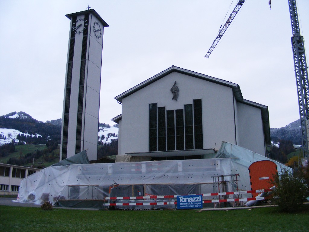 p. Sie sind unübersehbar, die vor kurzem gestarteten Sanierungsarbeiten an der Treppe und dem Kirchenvorplatz der Pfarrkirche Seewen. Ein Baukran ragt über das ganze Quartier, grosse Plastikbahnen hüllen die Baustellen-Teile ein und schützen sie gegen die Spätherbst-Kälte. Und Fussgänger-Hinweisschilder lenken die Kirchgänger, die Baustelle nicht zu betreten und an ihr vorbeizugehen. Auslöser für die Installation dieser Baustelle waren Schäden an der Aussentreppe und dem Vorplatz zur Pfarrkirche. Materialermüdungen, aber auch neue Erkenntnisse bezüglich Sicherheitsvorkehrungen (Höhe der Geländer!) veranlassten die Pfarreiverantwortlichen, über die Bücher zu gehen und um einen Kredit nachzufragen (Siehe Dorfnews vom 5.12.2015). Sofern nun alles ‚rund läuft‘, sollten die Arbeiten noch vor Einbruch des ‚grossen Winters‘ abgeschlossen werden können.