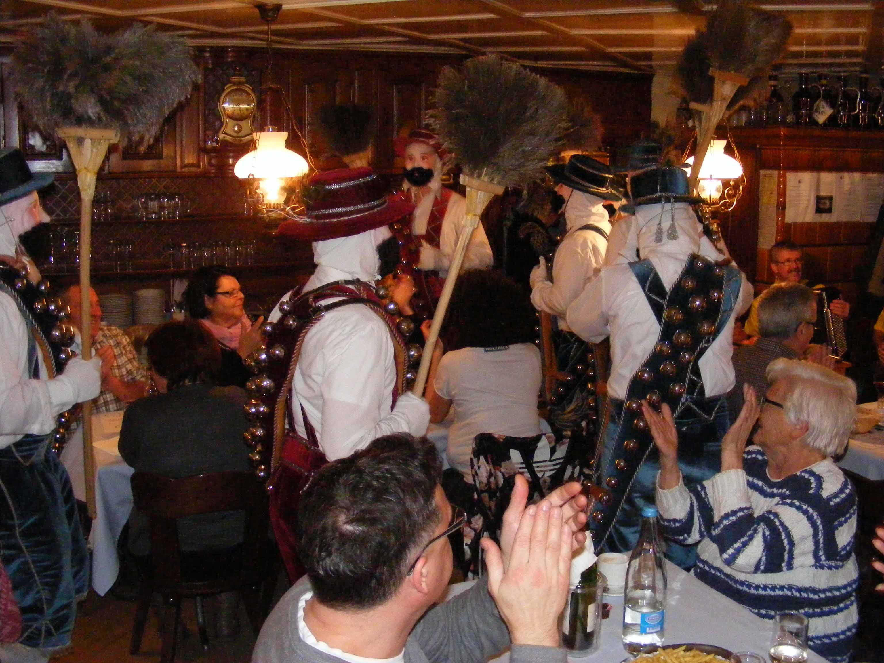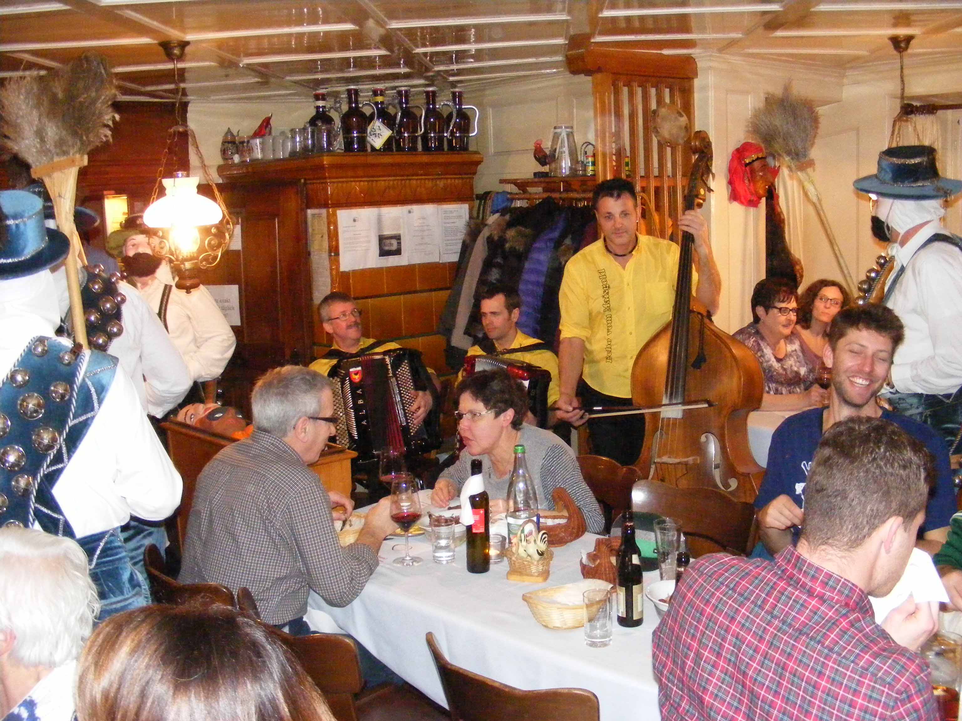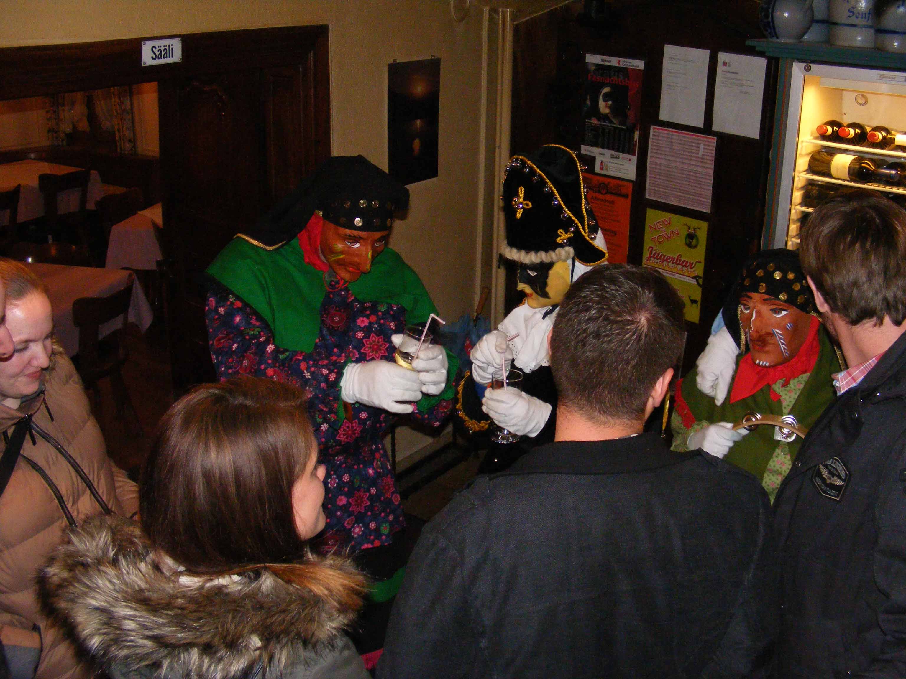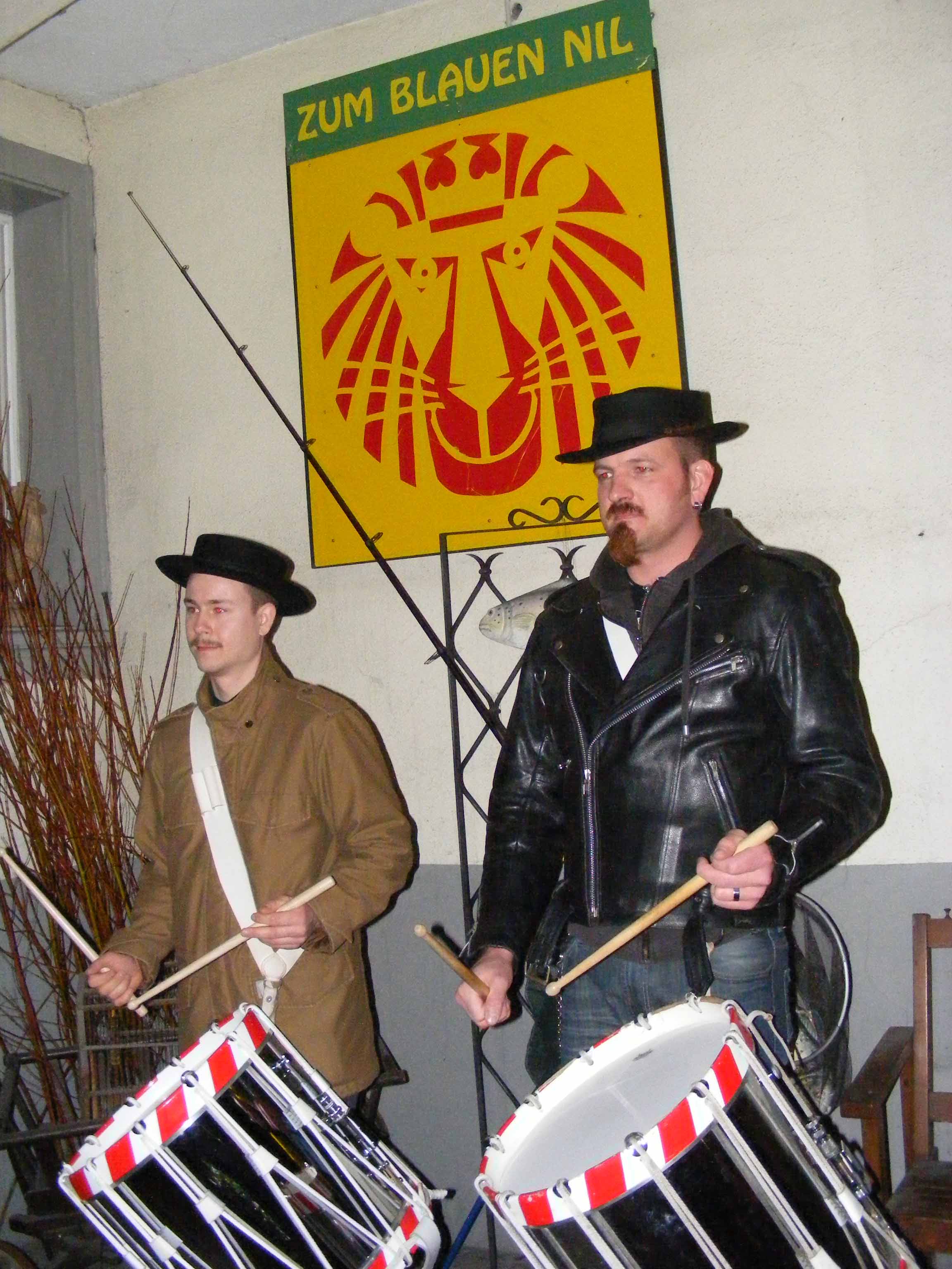 Ab 20 Uhr machten sich die Tambouren mit der Rott auf den Weg von Schankhaus zu Schankhaus. Es gehört zur Tradition, dass jeweils vor den Gaststätten kräftig 'gnüssled' wird: