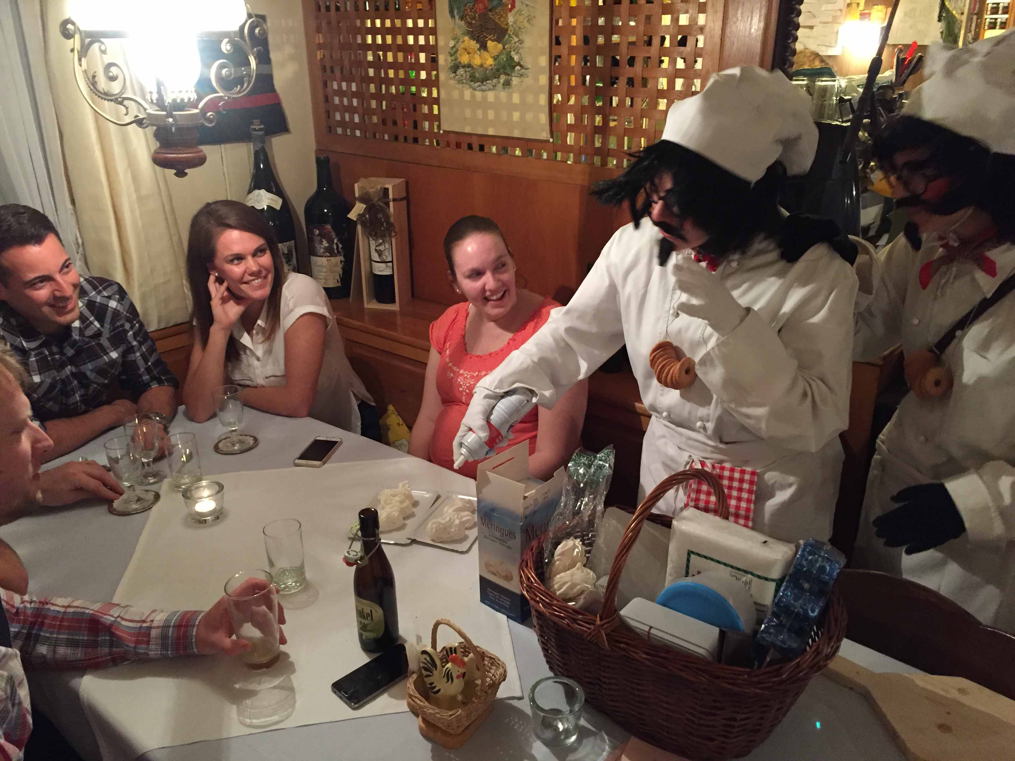 Doch nicht nur die 'Tiroler' begeisterten das Publikum. So war auch eine Gruppe 'Bäcker' unterwegs, die das Unterhalten der Gäste perfekt meisterte: