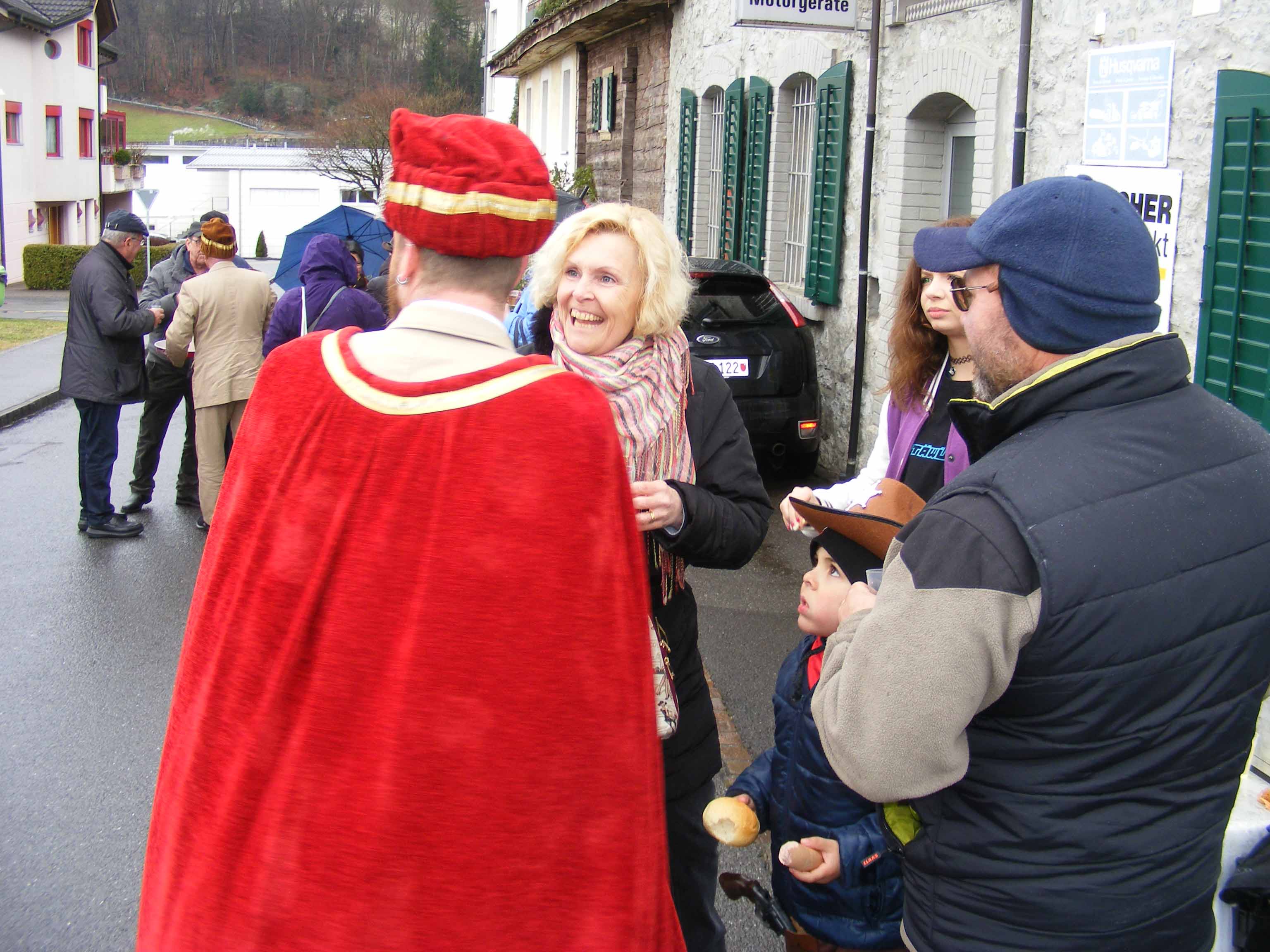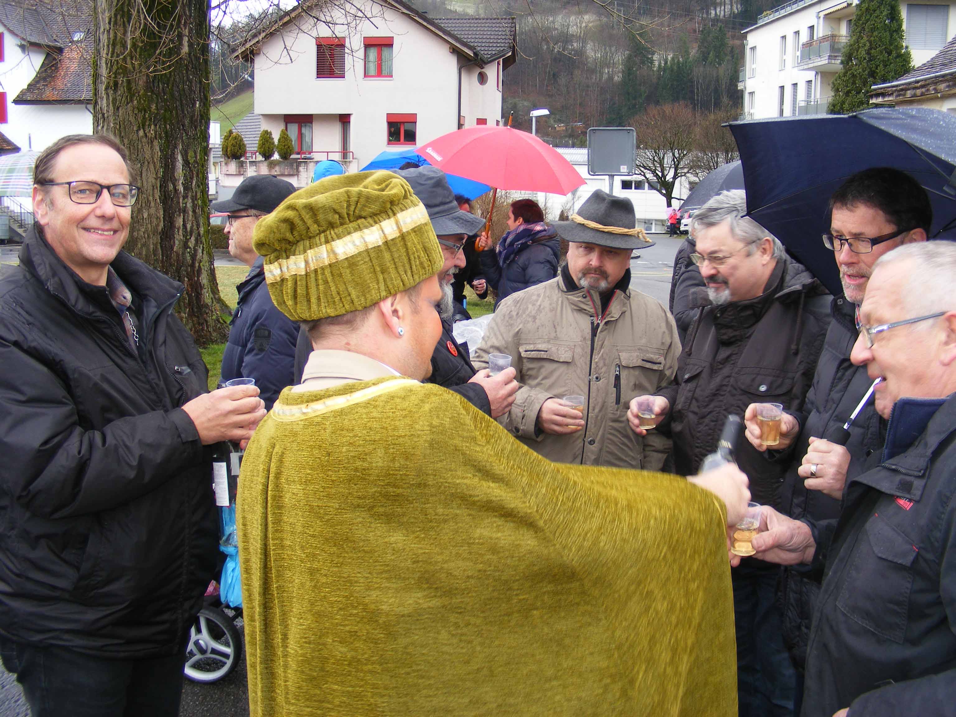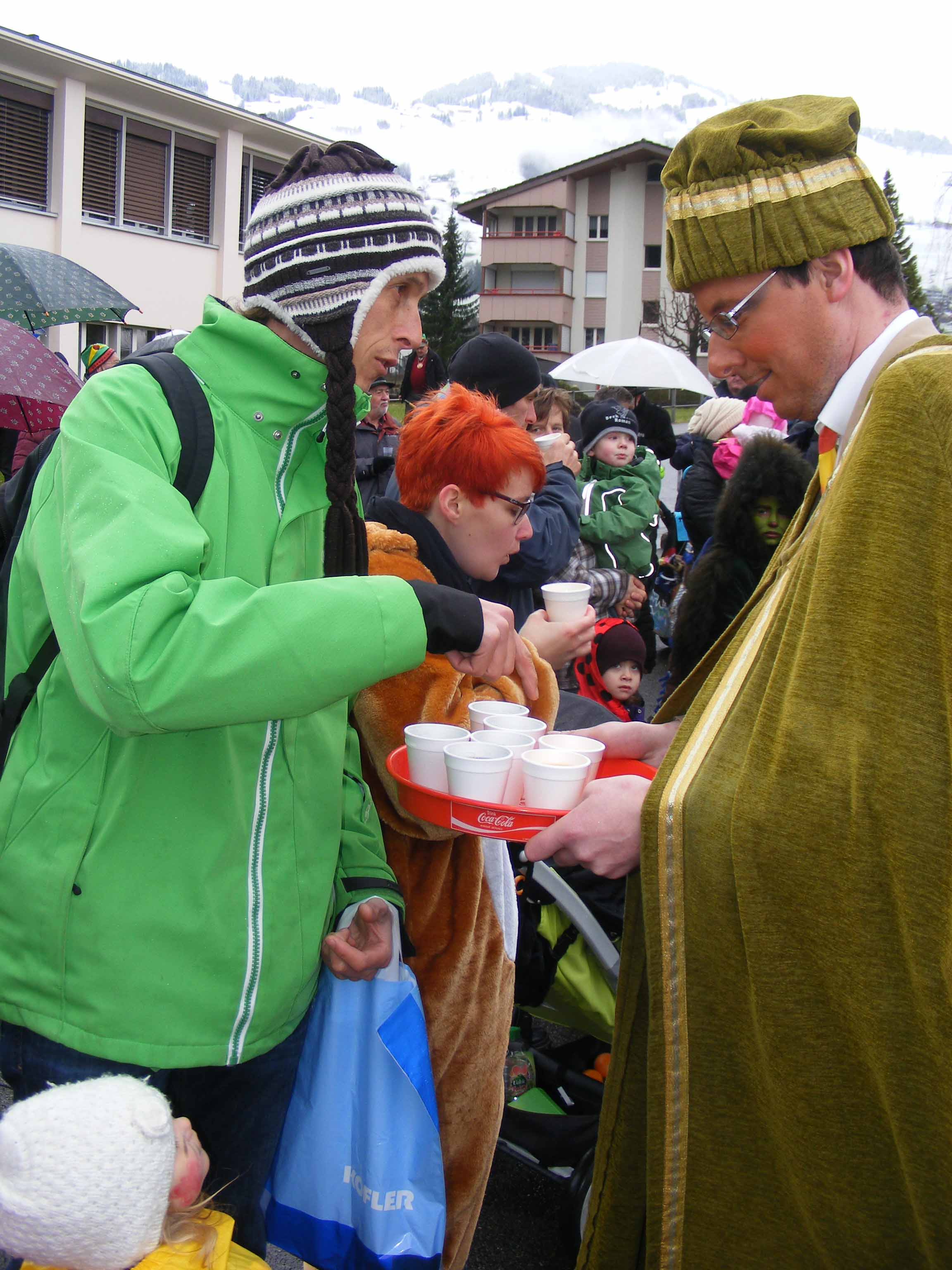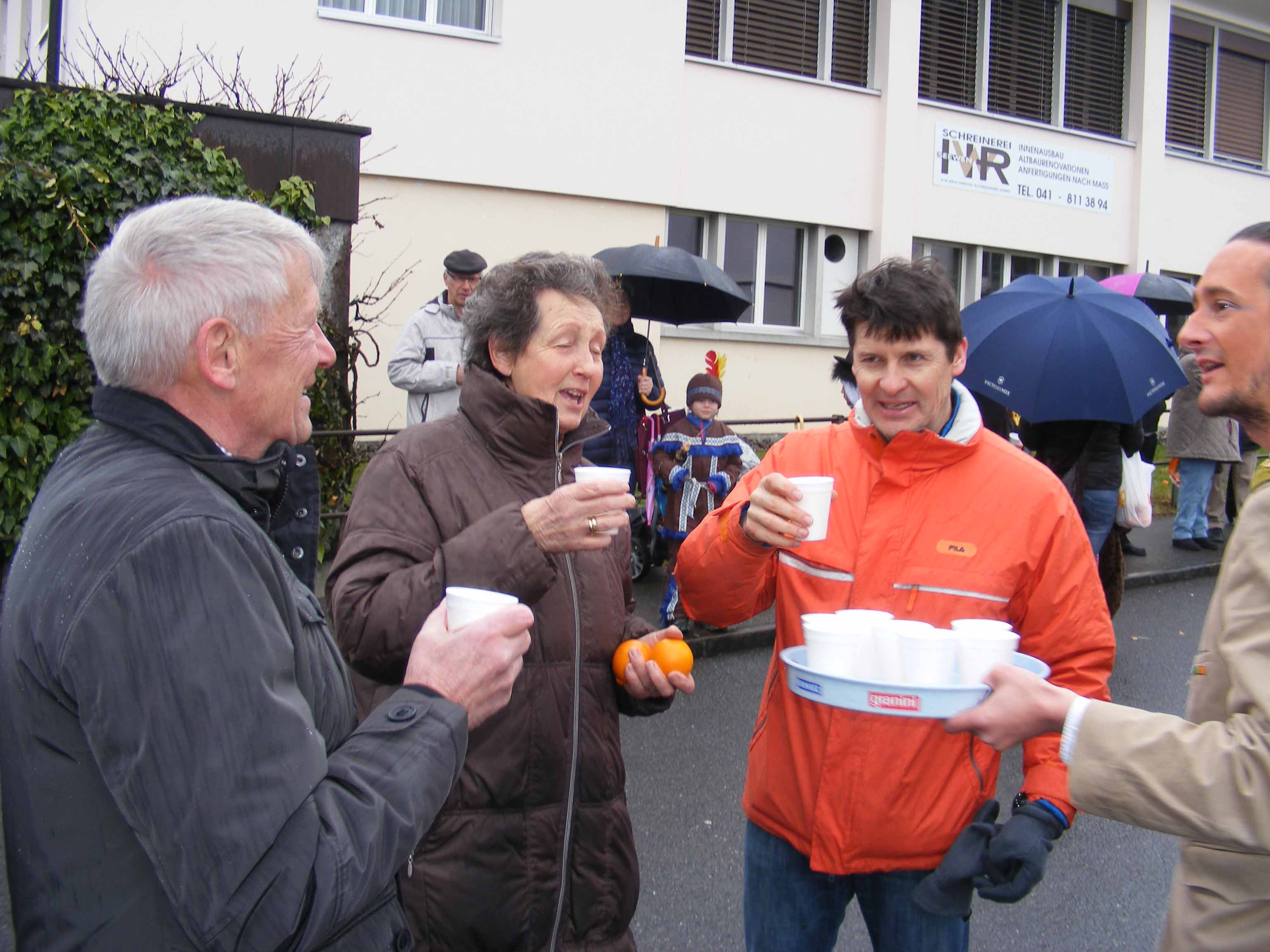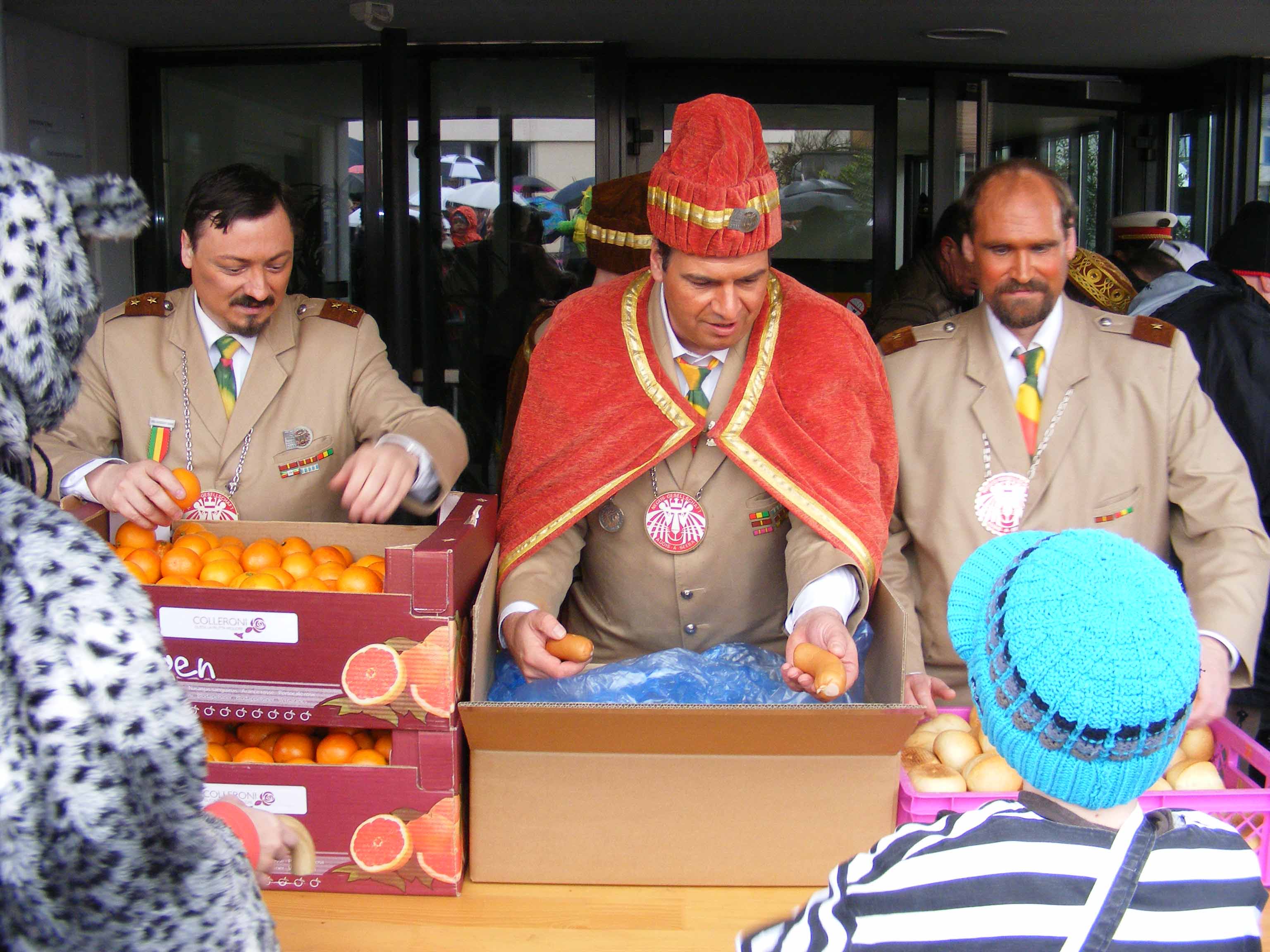 Vor dem 'Kreuz' werden erstmals Orangen verteilt und zümpftig 'gnüssled':