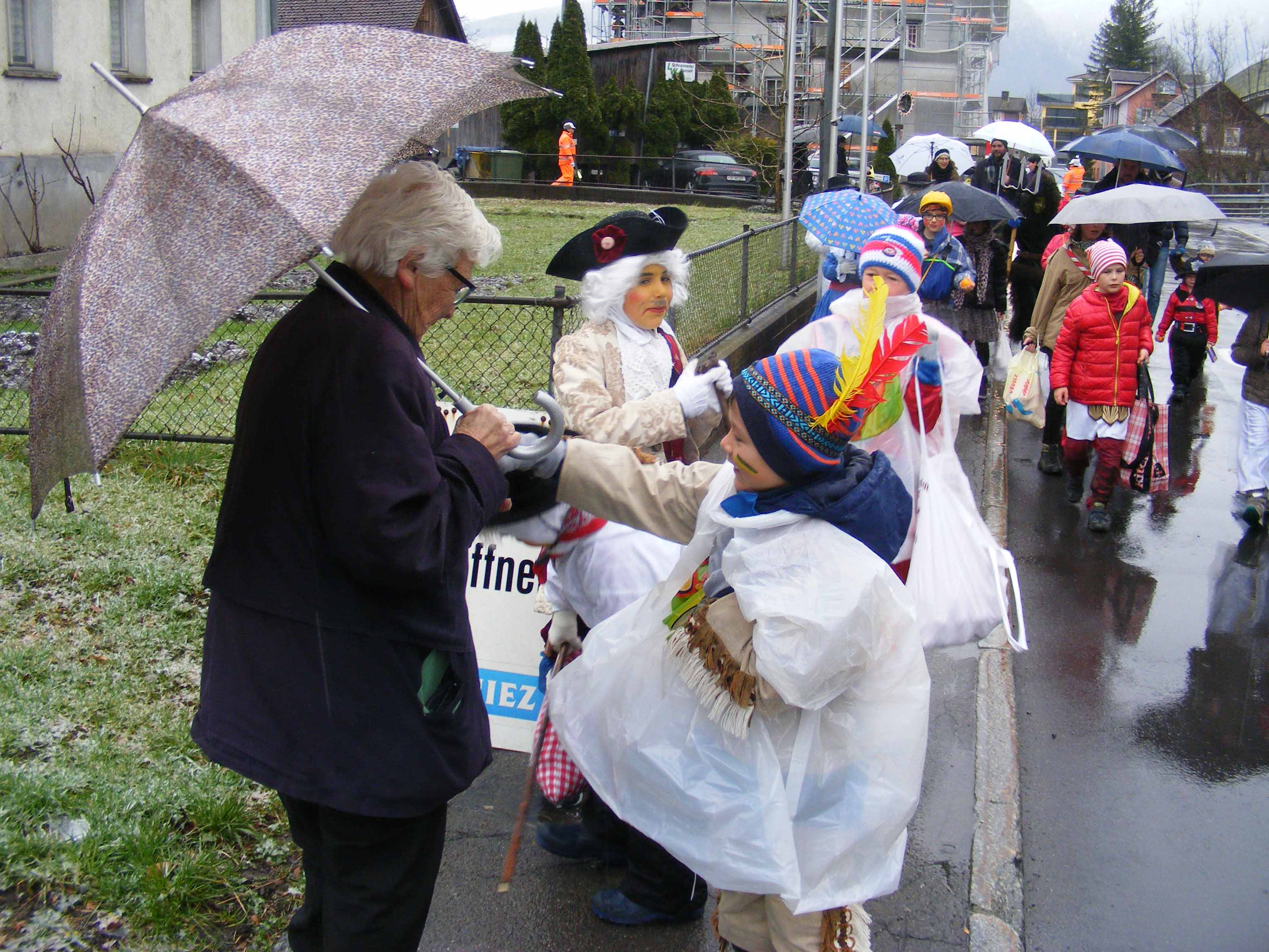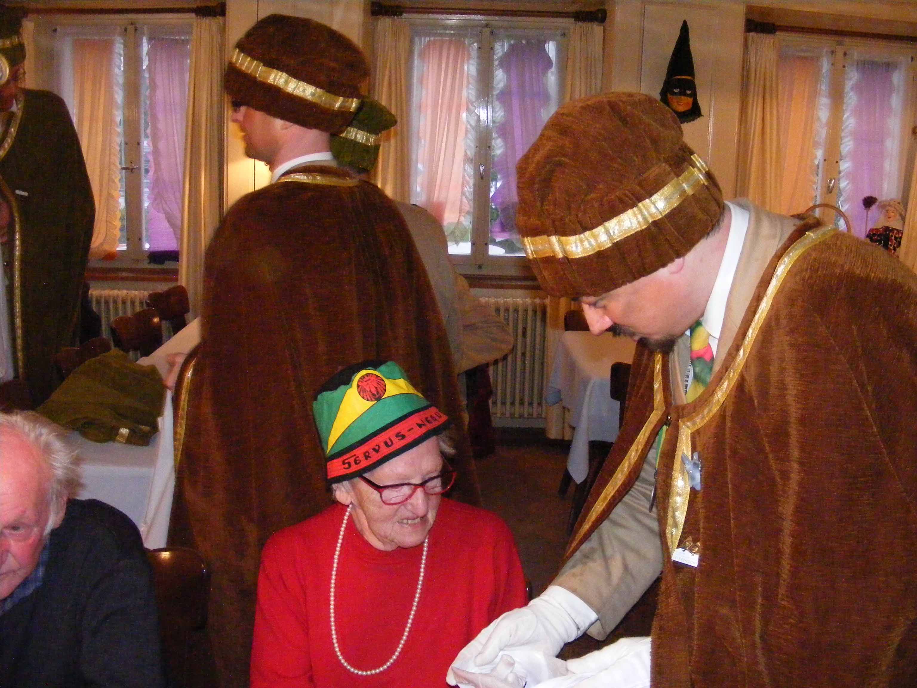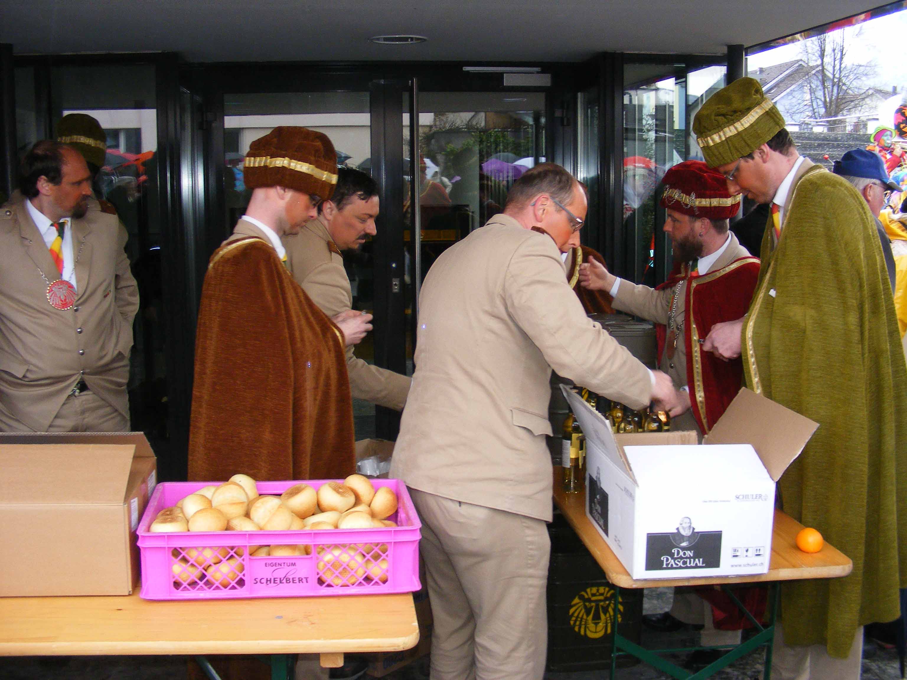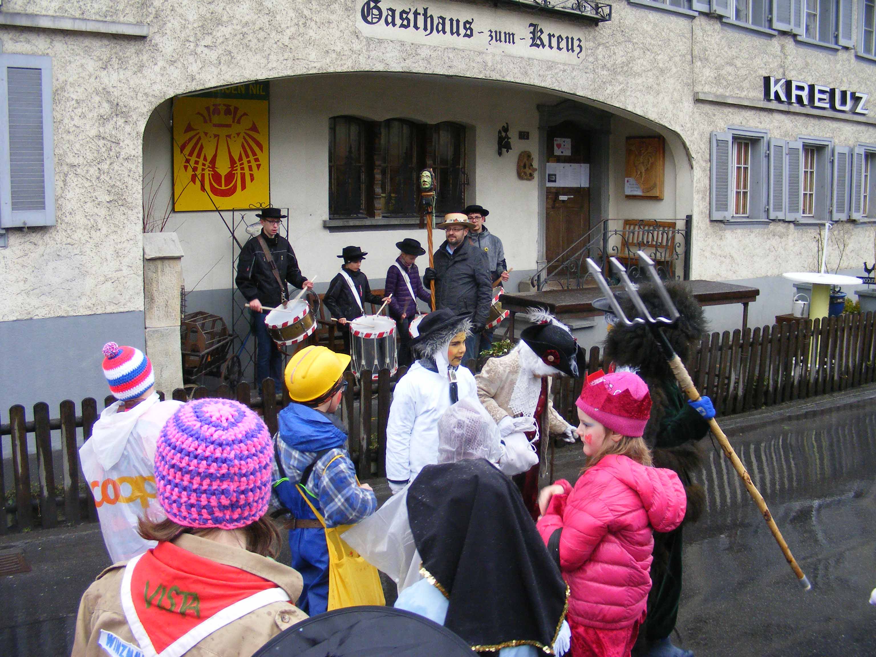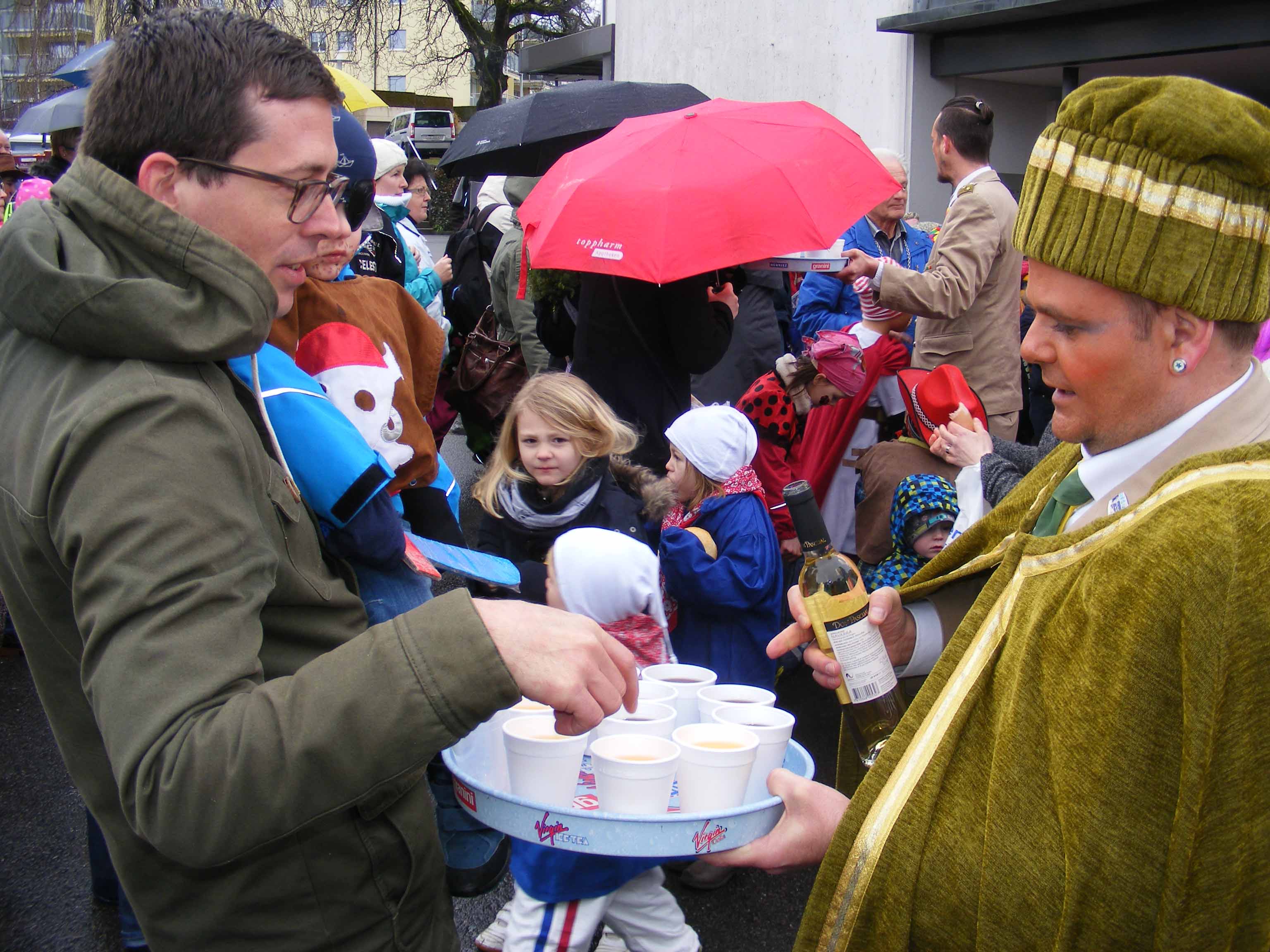 Vor dem 'Kreuz' werden erstmals Orangen verteilt und zümpftig 'gnüssled':