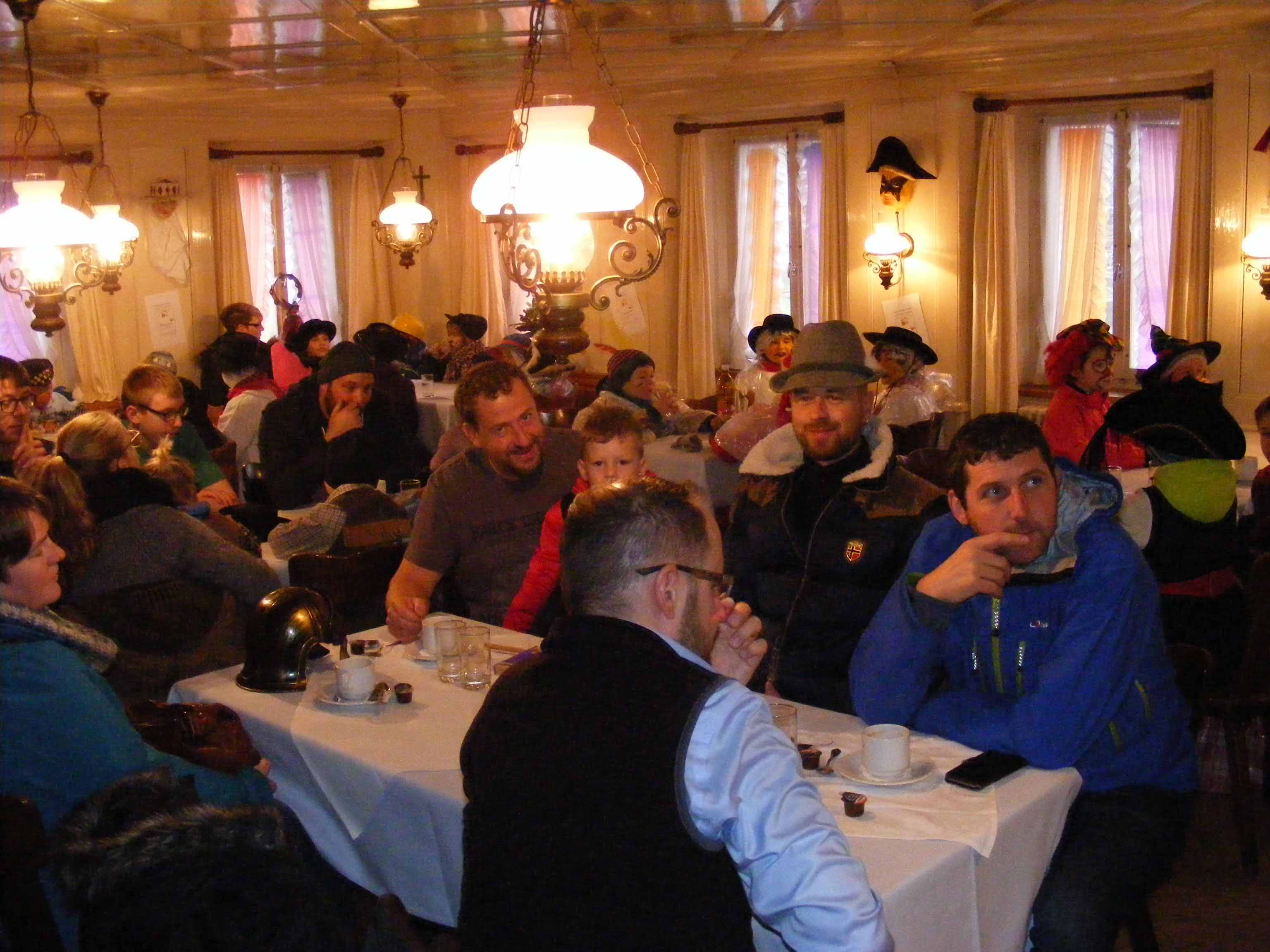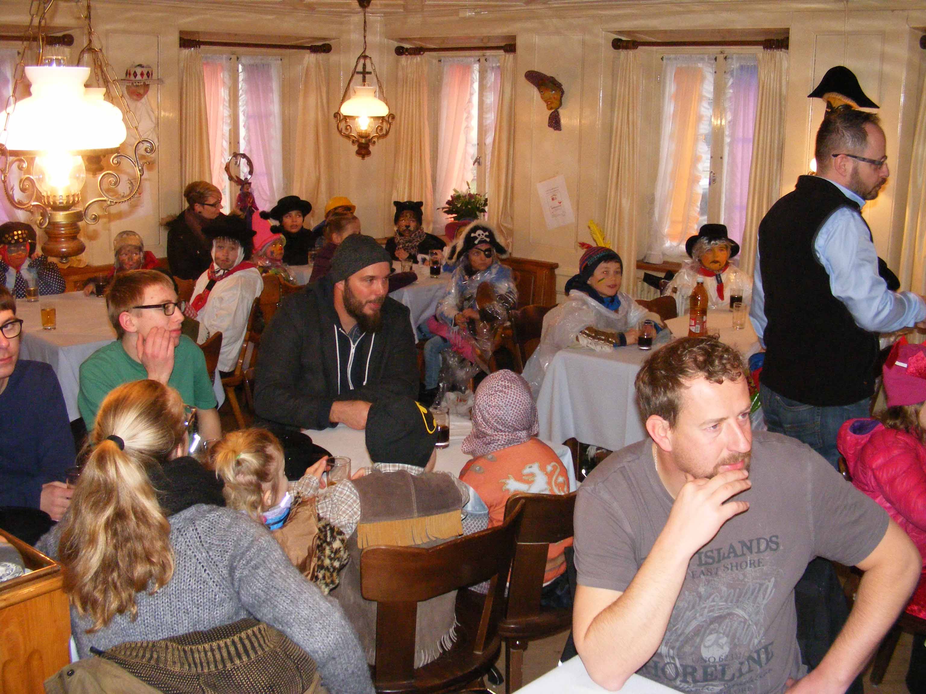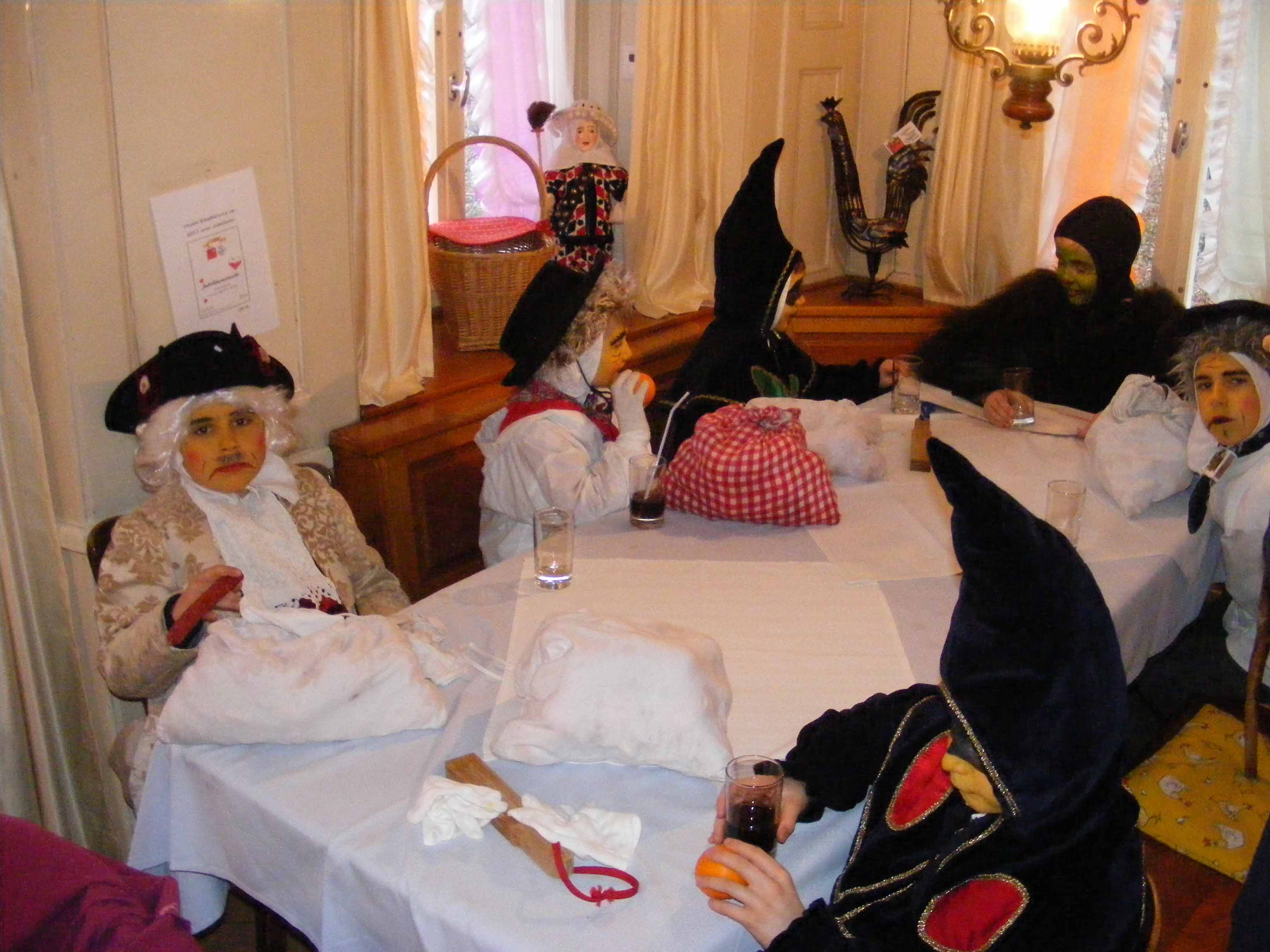 Abends spielte sich das Fasnachtstreiben dann nur noch in den Schankhäusern ab. Dort luden verschiedene Gastwirte zum Verweilen ein. Da und dort spielte gar eine Live-Musik einige lüpfige Melodien! Letztmals um Mitternacht wirbelte der Takt des Narrentanzes nochmals durch die Luft, bis die Kathedralen-Glocken den Tageswechsel signalisierten und somit den Beginn der Fastenzeit ankündigten.