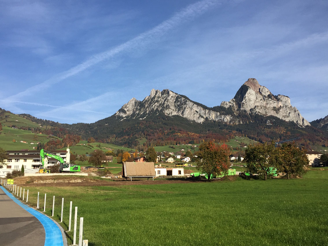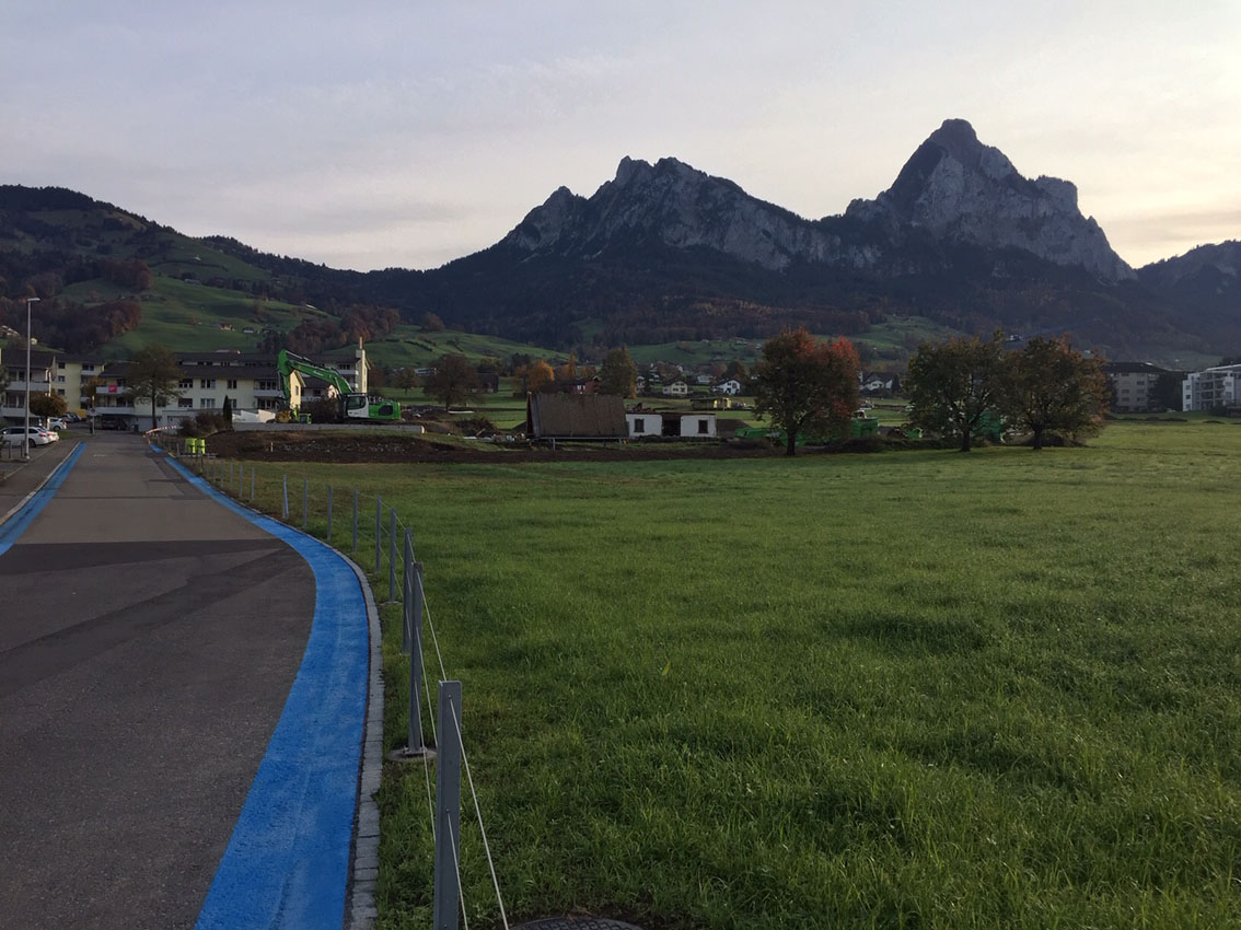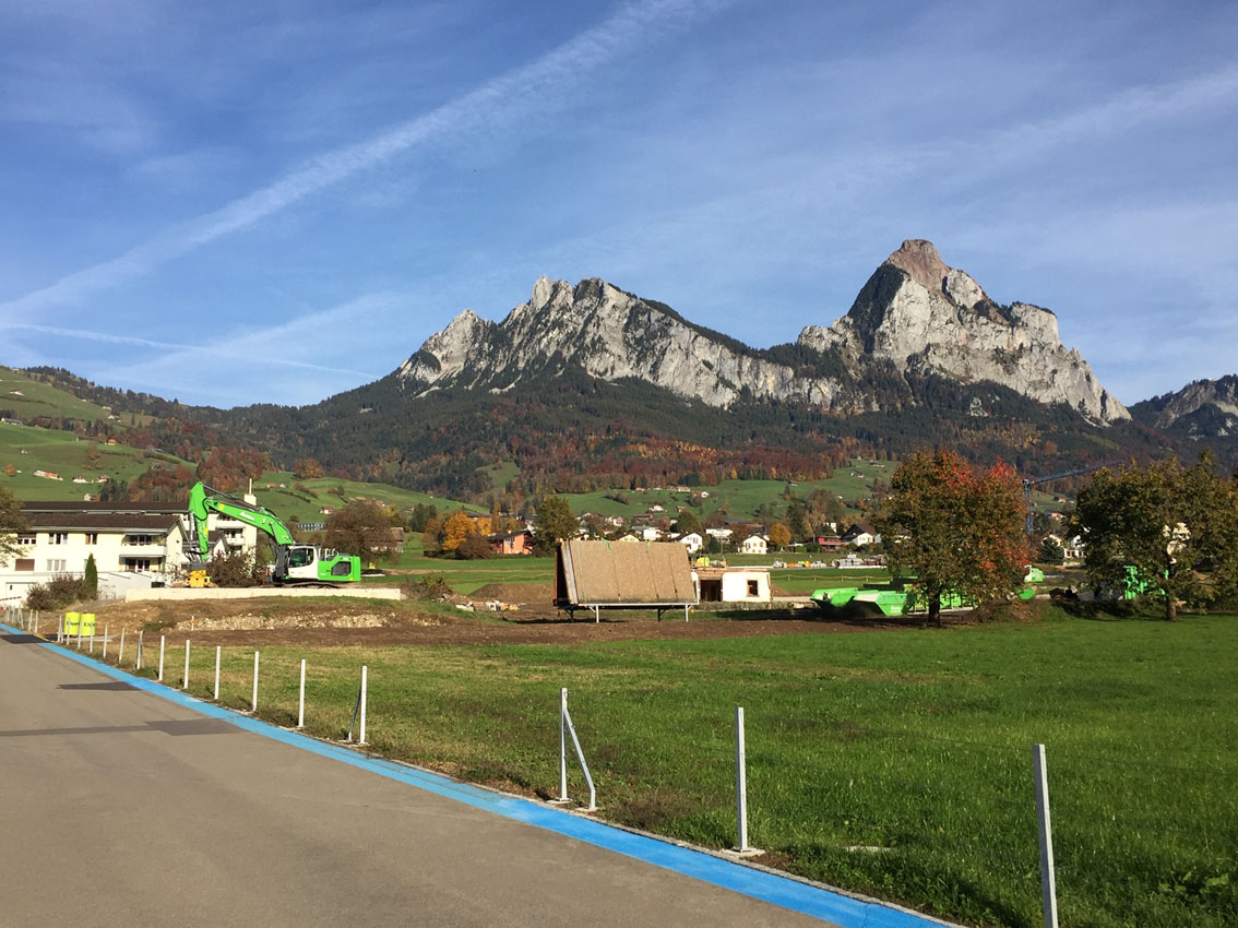 p. Jahrelang lag die Ueberbauung ‘Gardi’ inmitten saftig-grüner Wiesen. Gegen Westen öffnete sich den Bewohnern der Blick übers Krummfeld Richtung Lauerzersee, gegen Osten hin zeigten sich grüne Matten gegen das ‘Stelzli’. Gehindert wurde der Blick Richtung Schwyz einzig durch das Gehöft ‘Beffa’ mit Stall, Bauernhaus und Scheune/Tenn. Doch Letzteres ist nun auch Geschichte. Nachdem Aldo Beffa das Anwesen an die Unternehmerfamilie von Beat Föhn (Brunnen/Muotathal) verkauft hatte und danach in der Ostschweiz einen neuen Landwirtschaftsbetrieb erwarb, standen die Signale klar. Es war eine Frage der Zeit, bis die älteren Gebäude der Gesamtüberbauung ‘Seewen-Feld’ weichen mussten. Dies war in den letzten Oktober-Tagen nun geschehen. Arbeiter der Firma Käppeli zerlegten die letzten Gebäudeteile und ebneten den Platz ein.