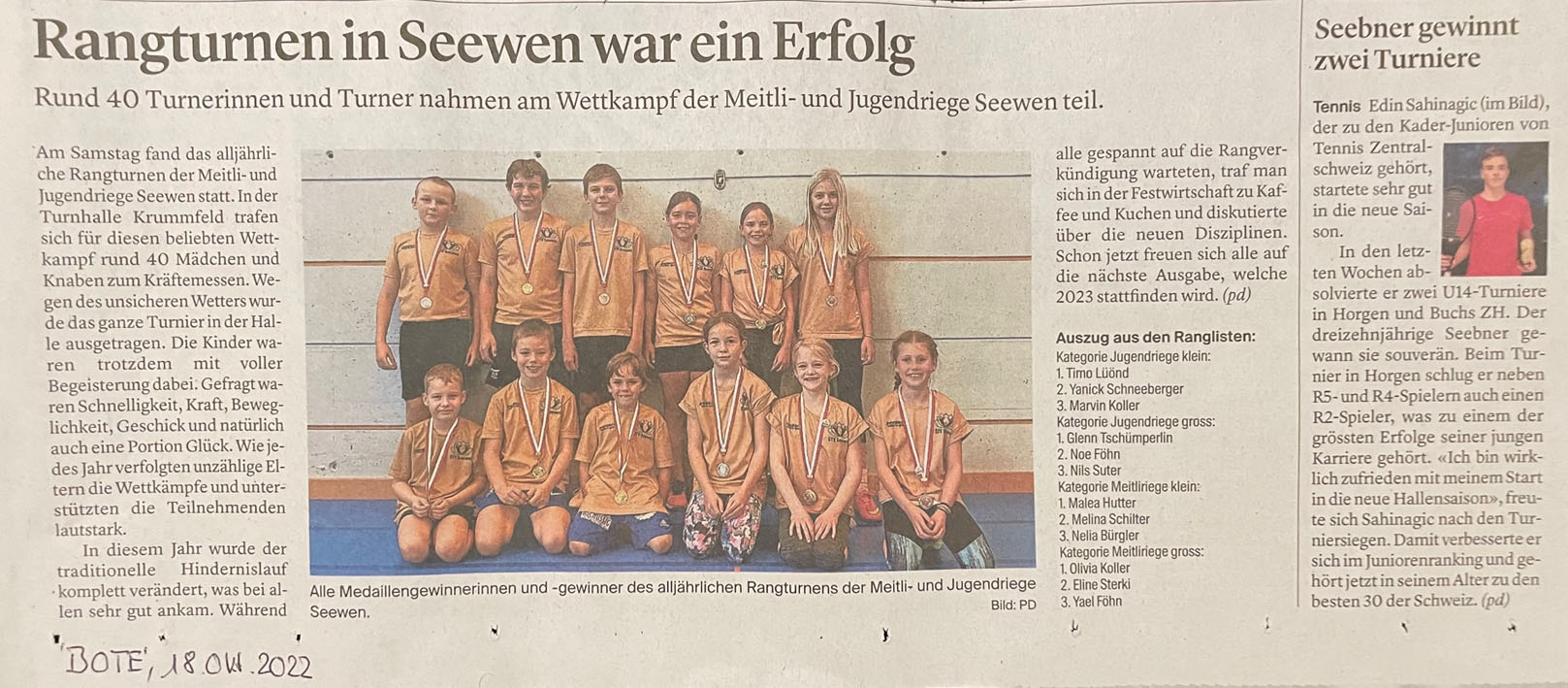 Nachstehend die Meldung aus dem 'Bote' vom 8. Juni 2022: