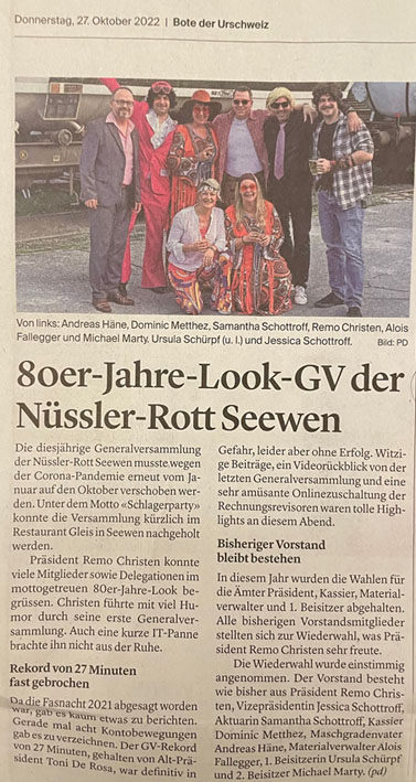 p. Sie bilden das Rückgrat der Gesellschaft, die Vereine. Sie, Schulklassen und die Gastrobetriebe beleben die Ortschaften. Schön, wenn nach einer Phase des kollektiven Stillstandes wieder langsam 'Vereinslebenfahrt' aufgenommen wird! Nachfolgende Meldungen aus den Vereinen sind in den letzten Wochen an die Oeffentlichkeit gelangt! So wurde im 'Bote' Folgendes abgedruckt: