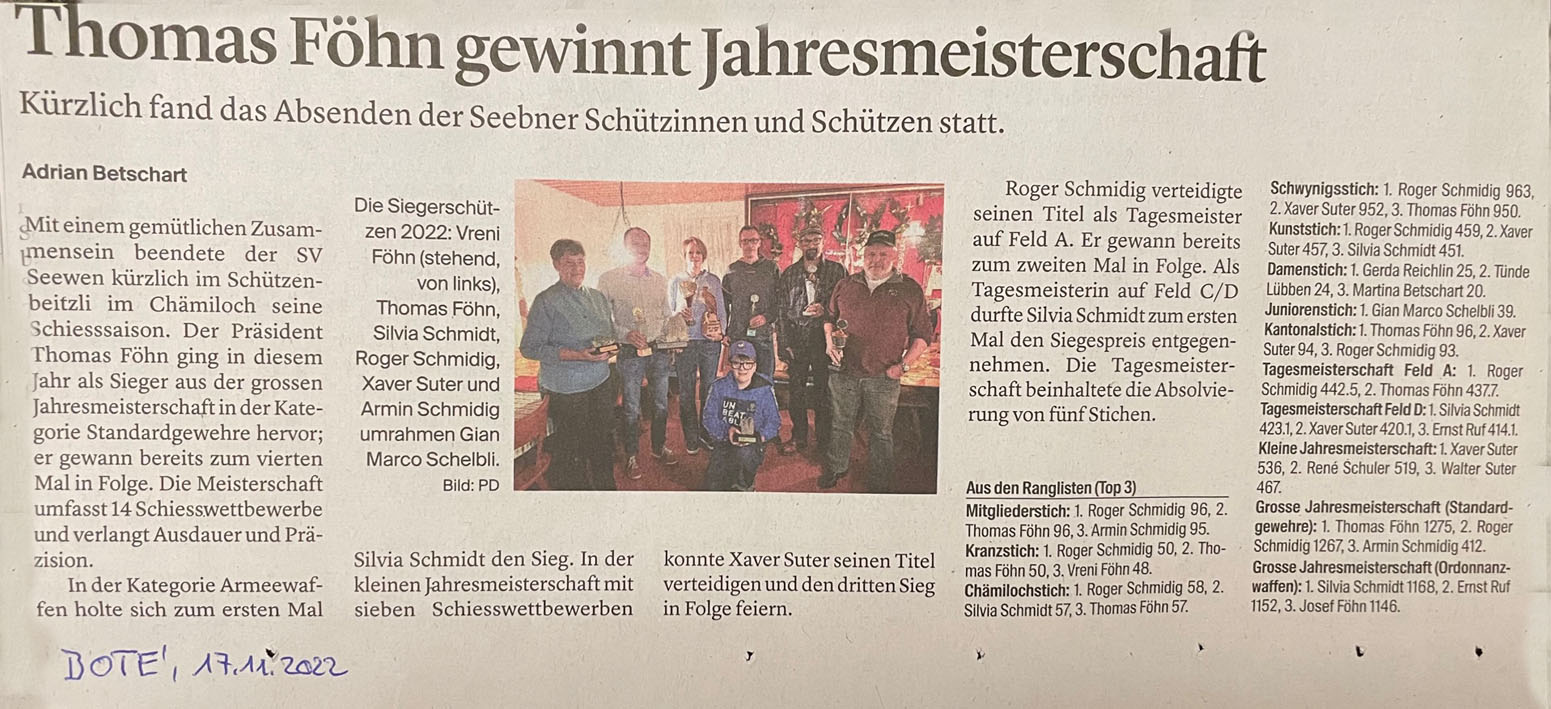 17.11.2022 News aus den Dorfvereinen
