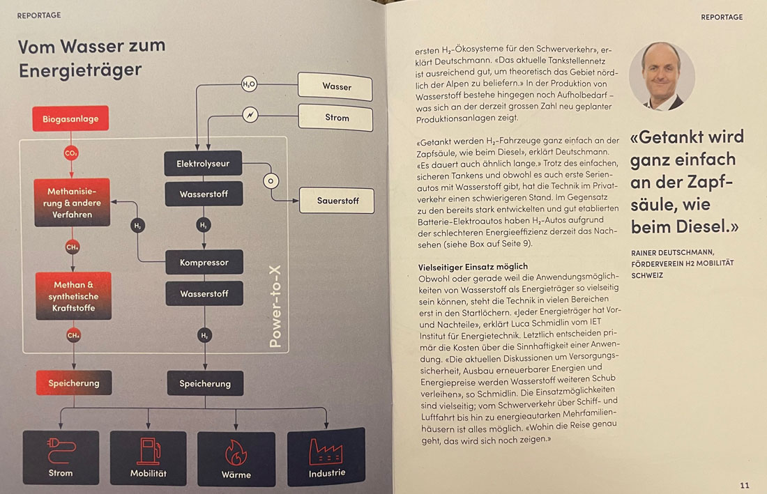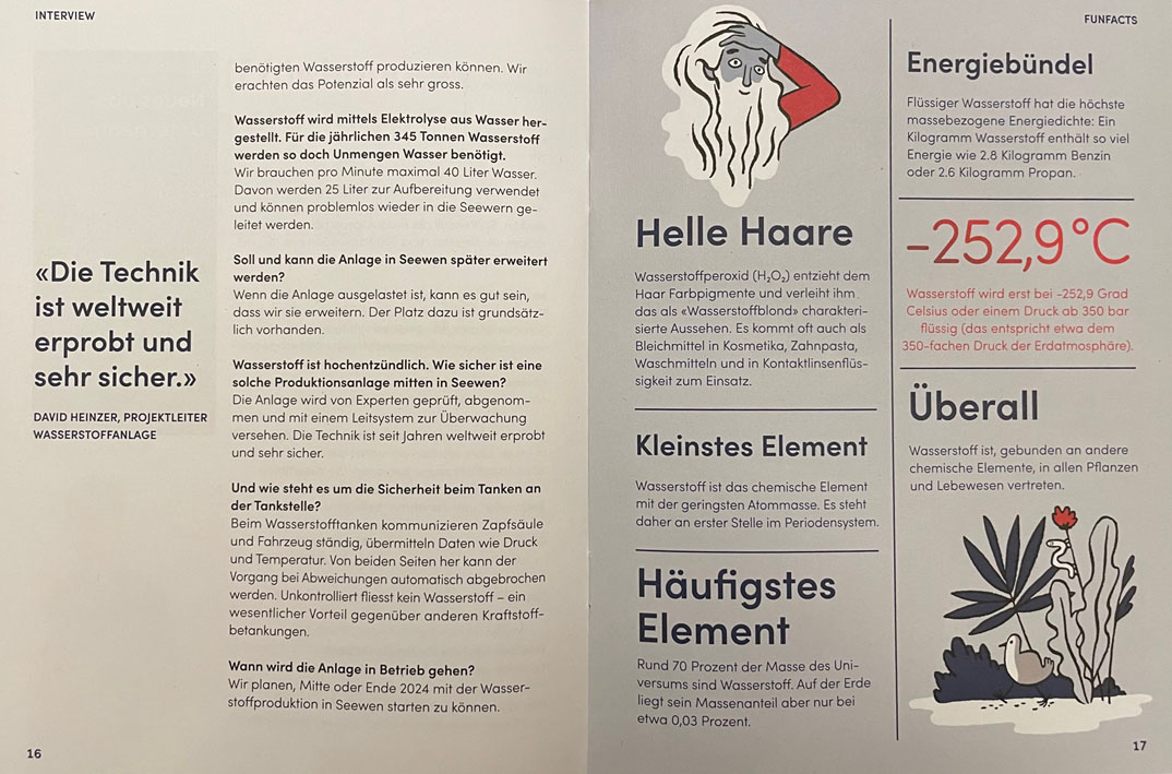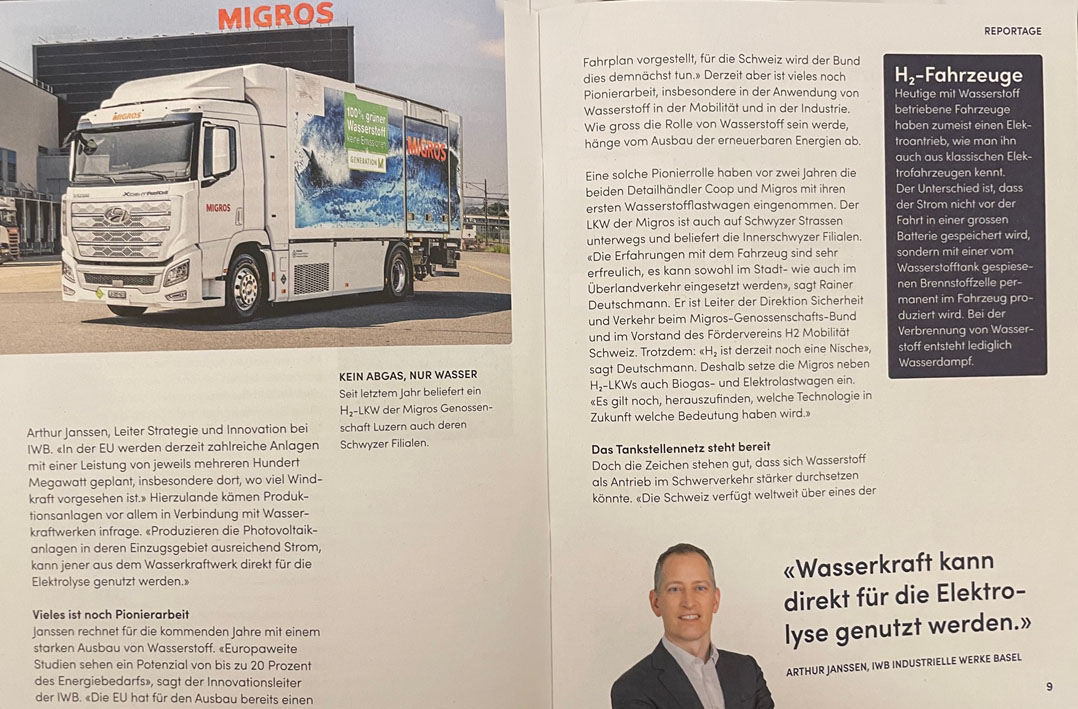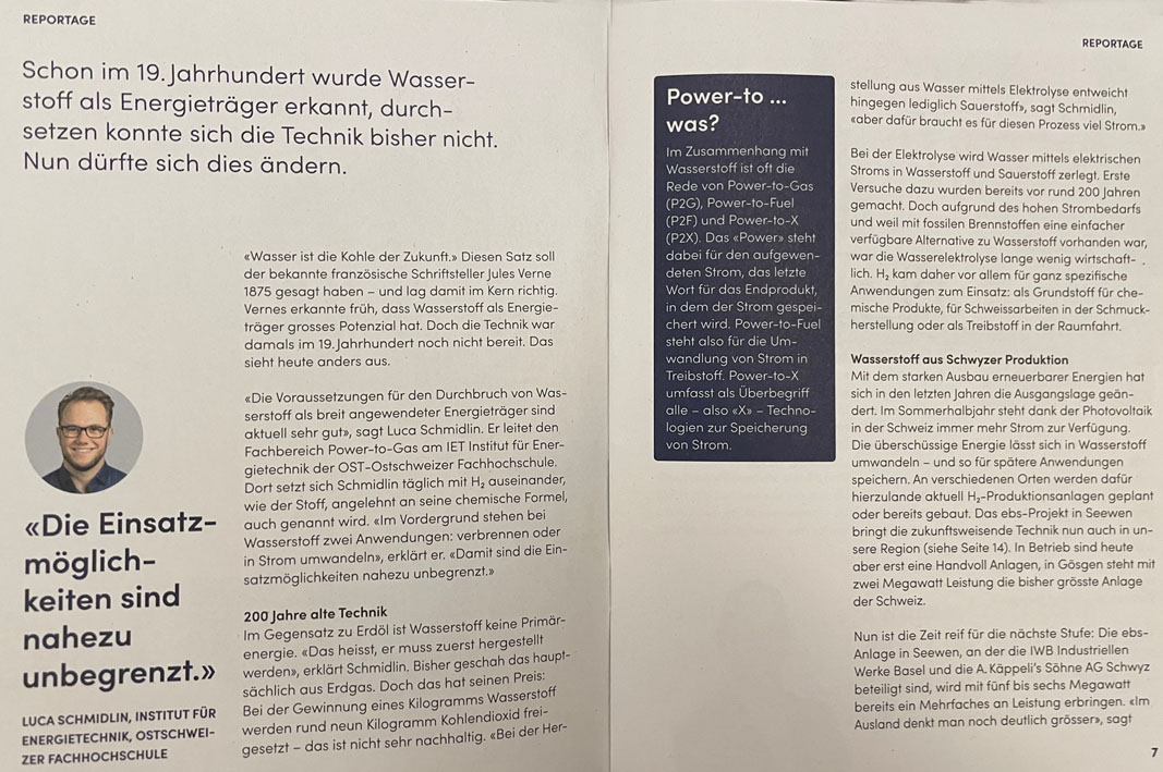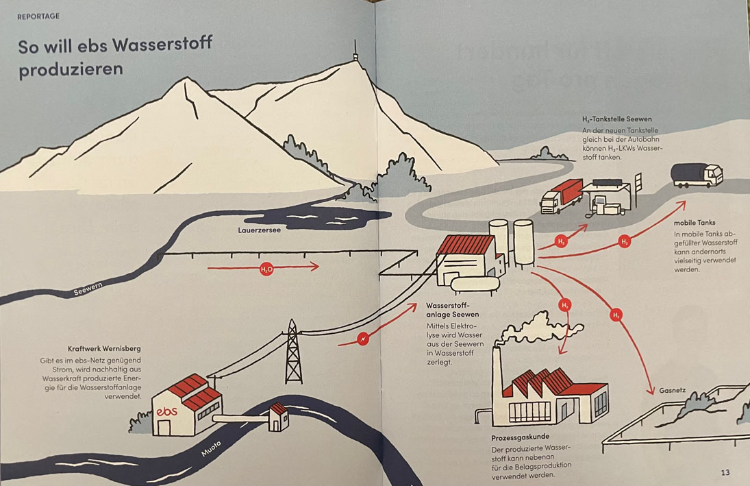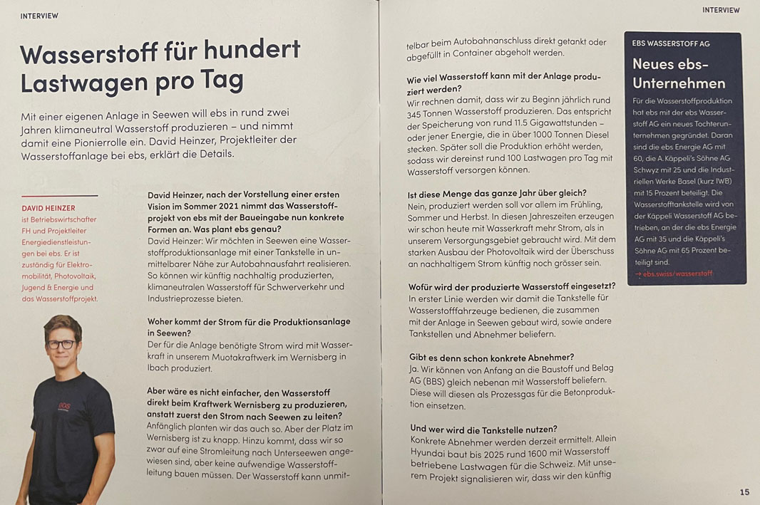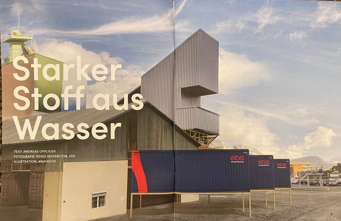 Die andere Meldung: direkt beim Autobahnanschluss Seewen soll ein Pilotprojekt entstehen. Geplant ist eine Produktionsstätte für Wasserstoff (= Energiegewinnung aus Wasser). Federführend hinter dieser Idee stehen der Schwyzer Energie- und Telekomanbieter EBS Energie AG, die IWB Industrielle Werke Basel sowie das Strassenbauunternehmen A. Käppeli’s Söhne AG Schwyz.