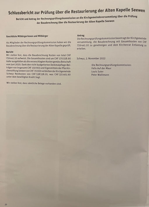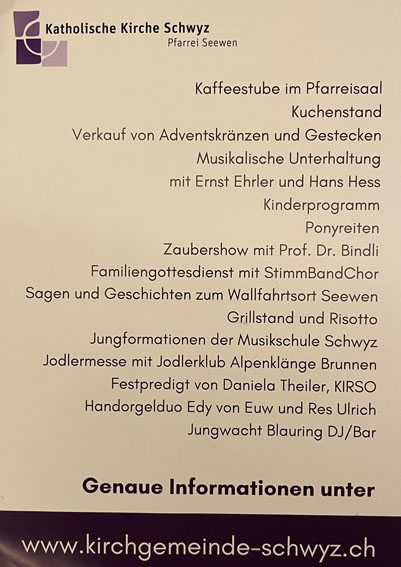 Weitere Infos finden sich auch unter www.kirchgemeinde-schwyz.ch