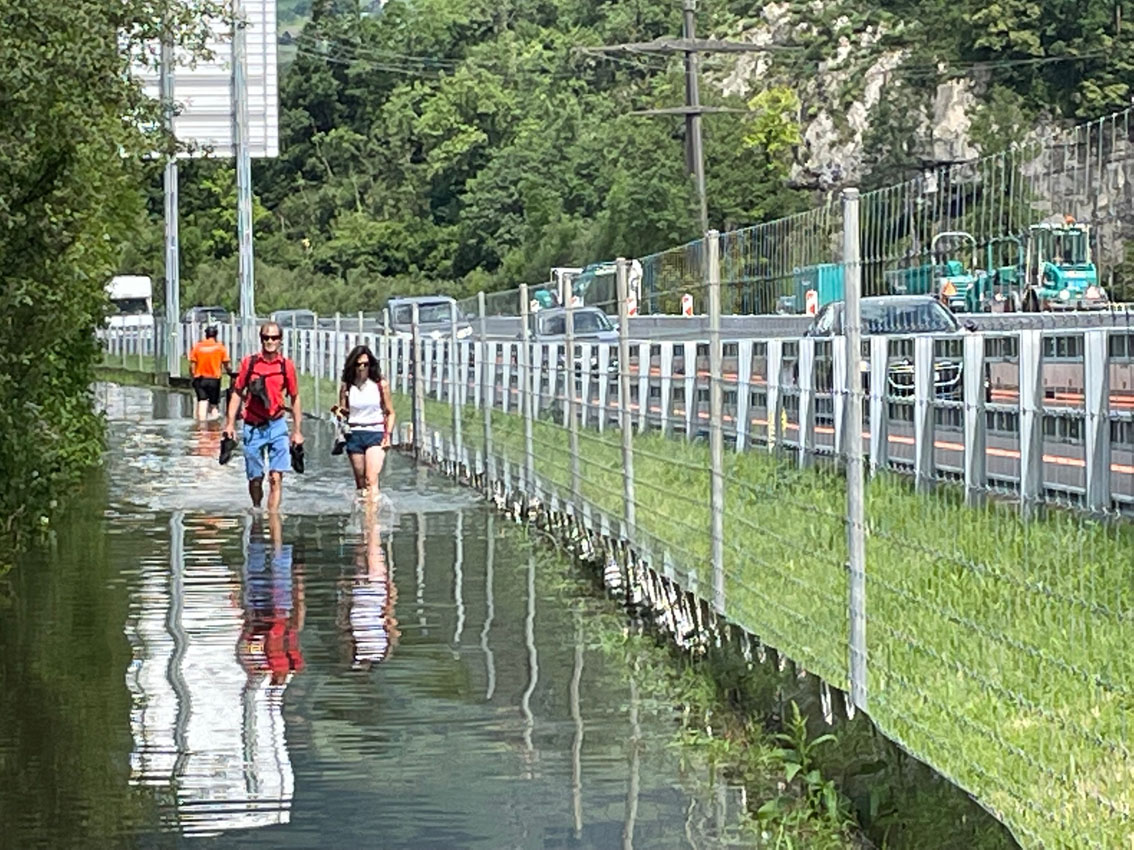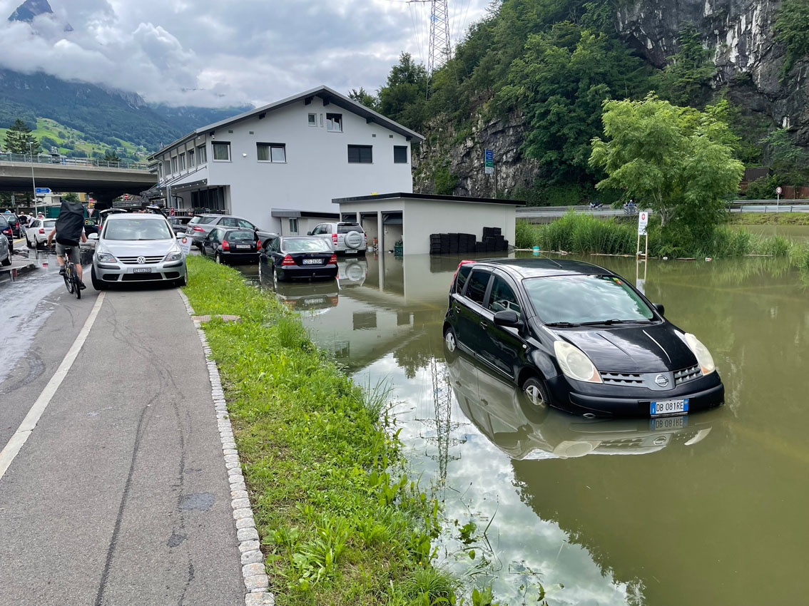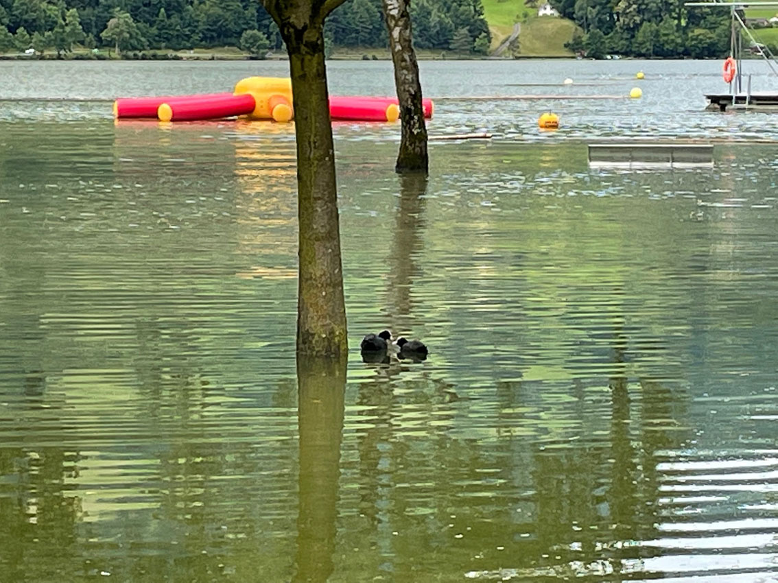 p. Tagelang schon regnet es fast pausenlos. Einher gingen erste heftige Sommergewitter, die bereits übers Land zogen. Eines davon hat vor Tagen besonders den Raum Rotkreuz/Steinhausen und Wohlhusen getroffen. Hagel hat Dächer zerstört und Felder der Bauern vernichtet. Bis gestern blieb die Talschaft Schwyz davon mehr oder weniger verschont. Doch in der Nacht vom Samstag auf den Sonntag (10./11.7.21) traf es auch den Talkessel. Enorme Regenmengen füllten die Bäche und den Lauerzersee, der einmal mehr über die Ufer trat und Schäden anrichtete (Siehe nachstehende Bilder). Für die Betroffenen einmal mehr ein Schlag ins Gesicht. Denn seit Jahrzehnten gäbe es Lösungen dagegen. So wartet das Projekt 'Entlastungsstollen, 11.4.2006' (Siehe Archiv, Dorfnews 2006) beispielsweise auf die Realisierung - sofern man will. Der politische Willen hingegen lässt weiterhin auf sich warten.