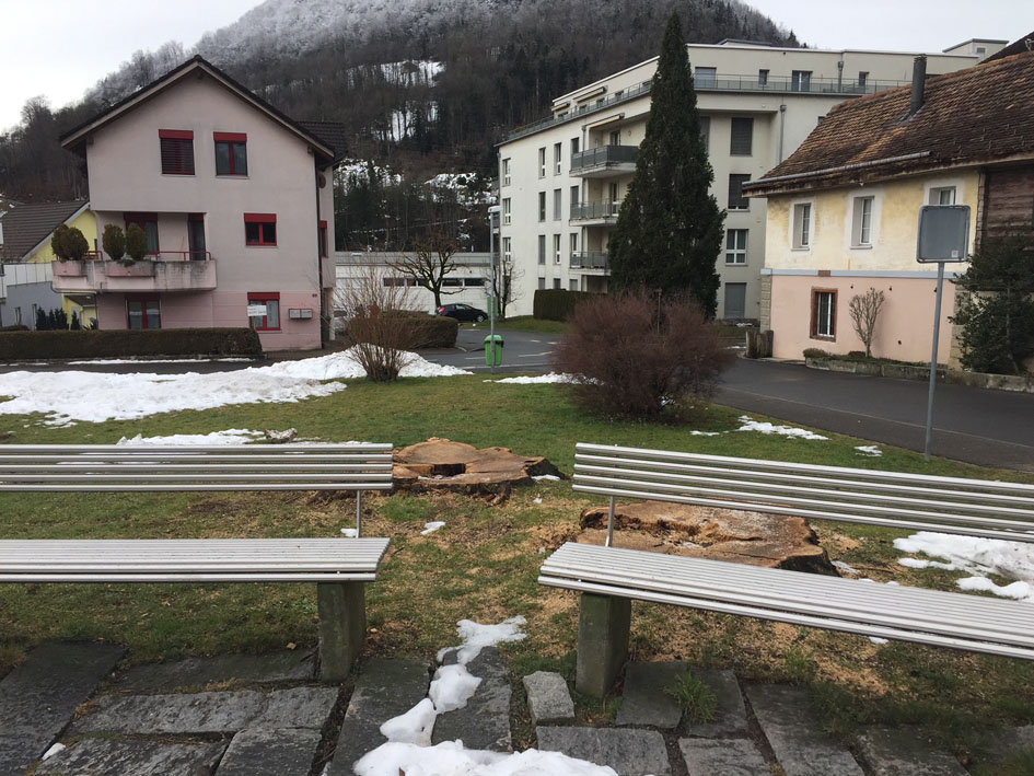 p. Sie prägten das 'Ensemble Kirche und Kirchturm', die ehemals drei Pappeln auf dem Gelände der Pfarrkirche Seewen. Diese im Zusammenhang mit der Einweihung der Kirche 1961 gesetzten Bäumchen wuchsen in den letzten 60 Jahren zu stattlichen Bäumen heran. Doch eine der Pappeln kränkelte schon vor Jahren, sie wurde ersatzlos gefällt. Gleiches Schicksal erlitten die zwei andern verbliebenen Pappeln: sie waren teils morsch und wurden Mitte Januar 2021 ebenfalls gefällt. Geblieben war das Wurzelwerk. Doch auch dieses gehört der Vergangenheit an bzw. wurde 'entsorgt'. Letzte Woche wurden die Strünke eliminiert und der Platz neu mit Erde bestückt. Irgendwie sieht der Platz jetzt 'leer' aus. Ob das so bleiben wird? - On verra...