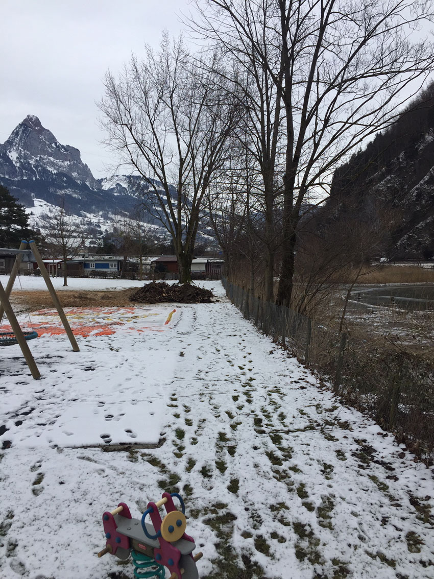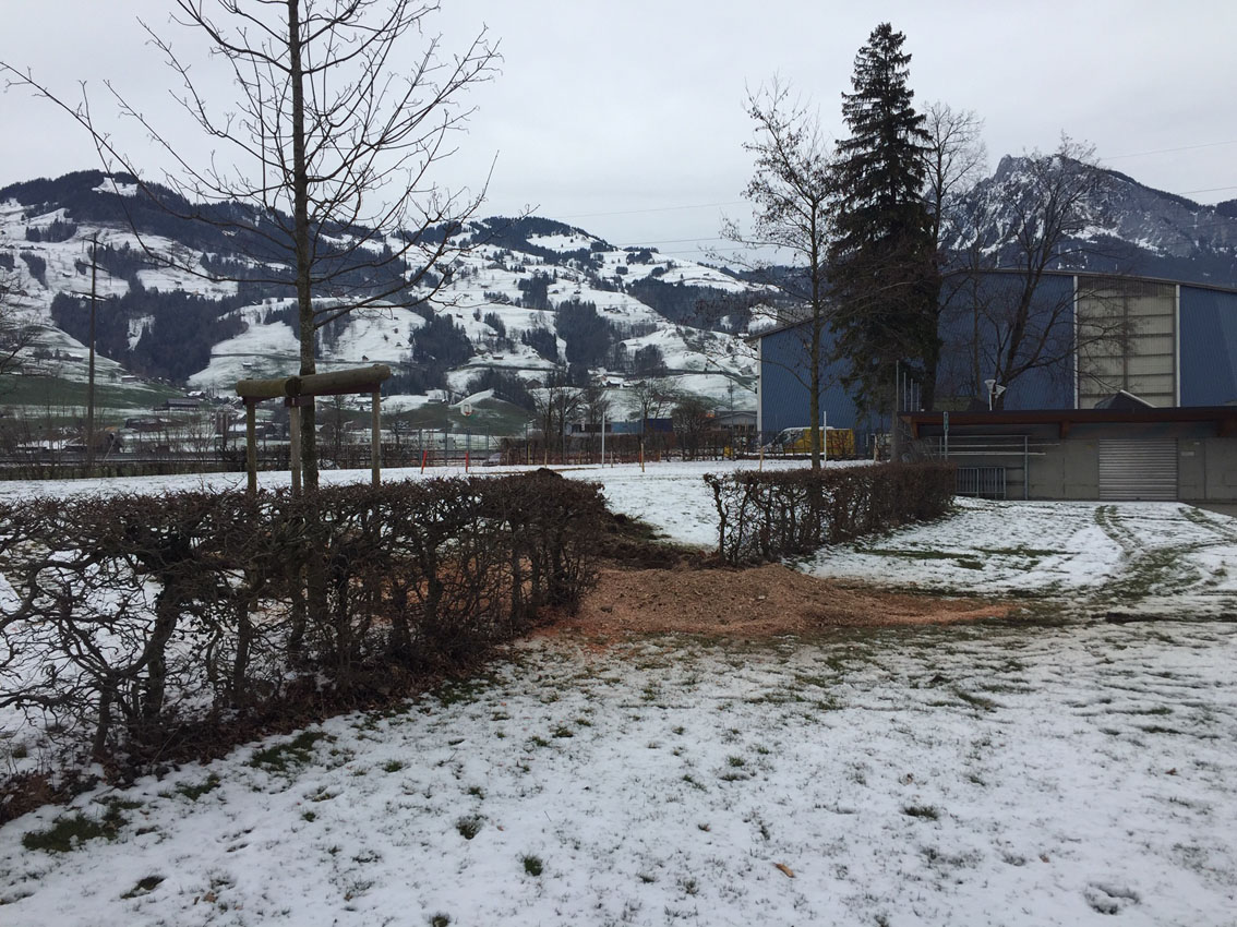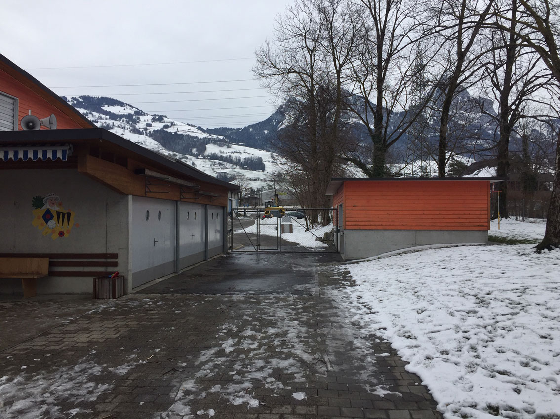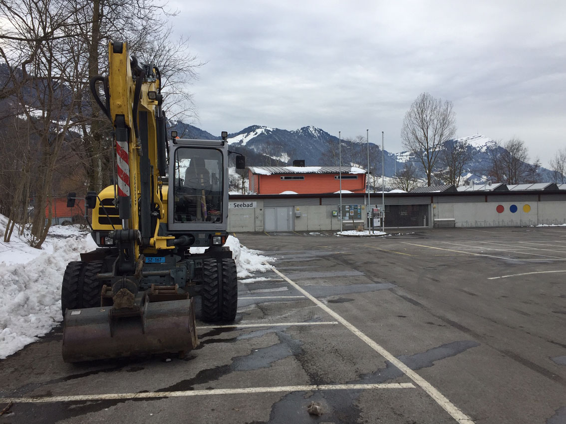Die Badi-Anlage am Güdel-Montag 2021, wo u.a. der neue Geräteschuppen erstellt wird: