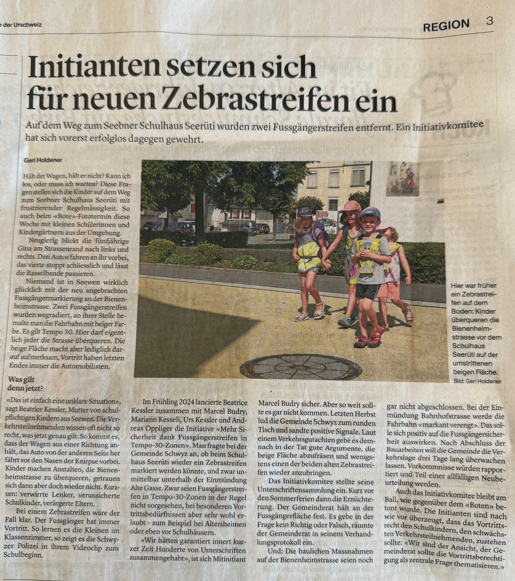 Nachstehend der Bericht aus dem 'Bote' vom 16. August 2025 zurVortrittsregelung auf der Bienenheimstrasse