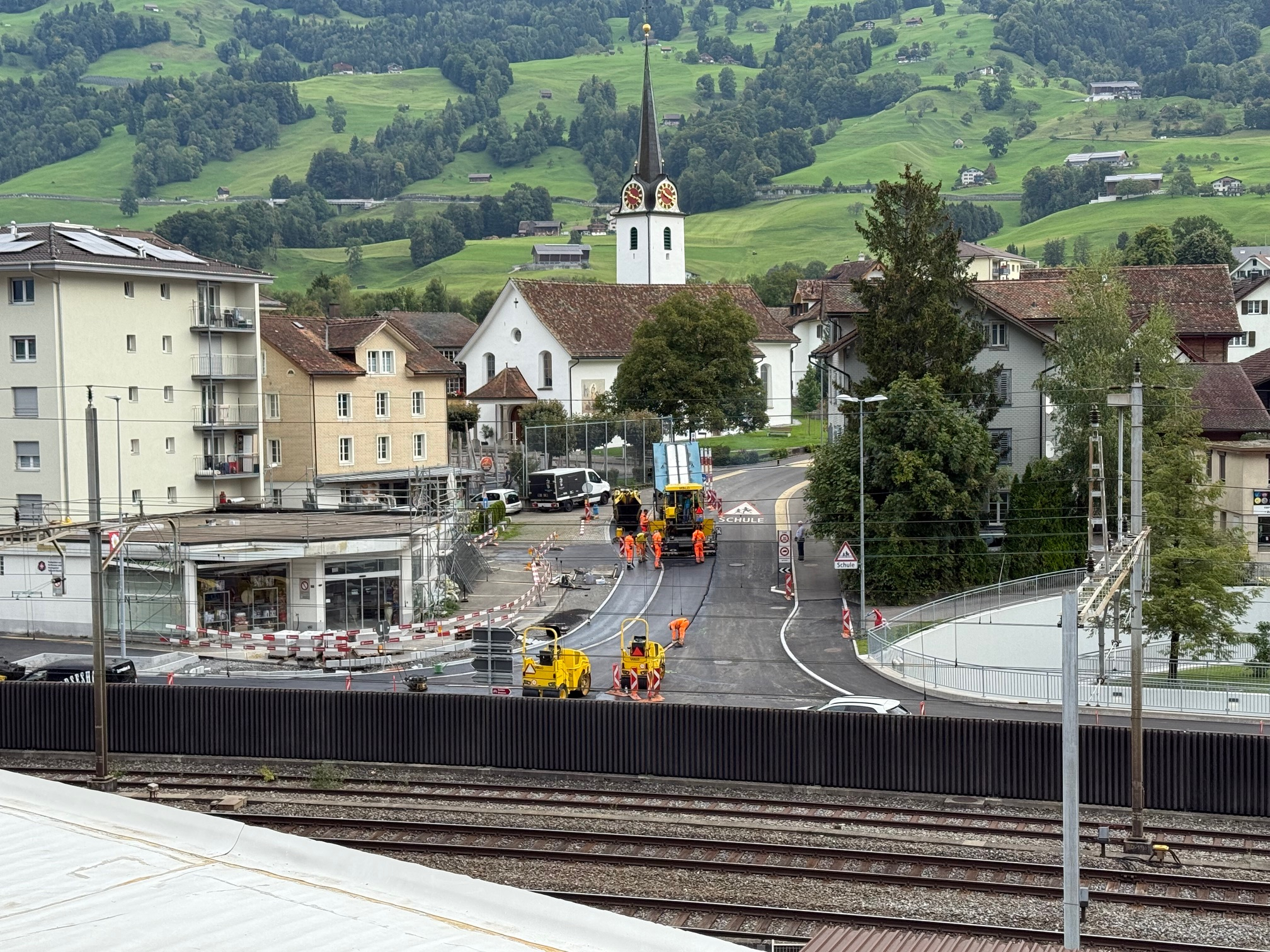 Langsam erkennt man die Strassenverengung ab der Bahnhof- in die Bienenheimstrasse. Das Bild entstand am 8.9.2025.