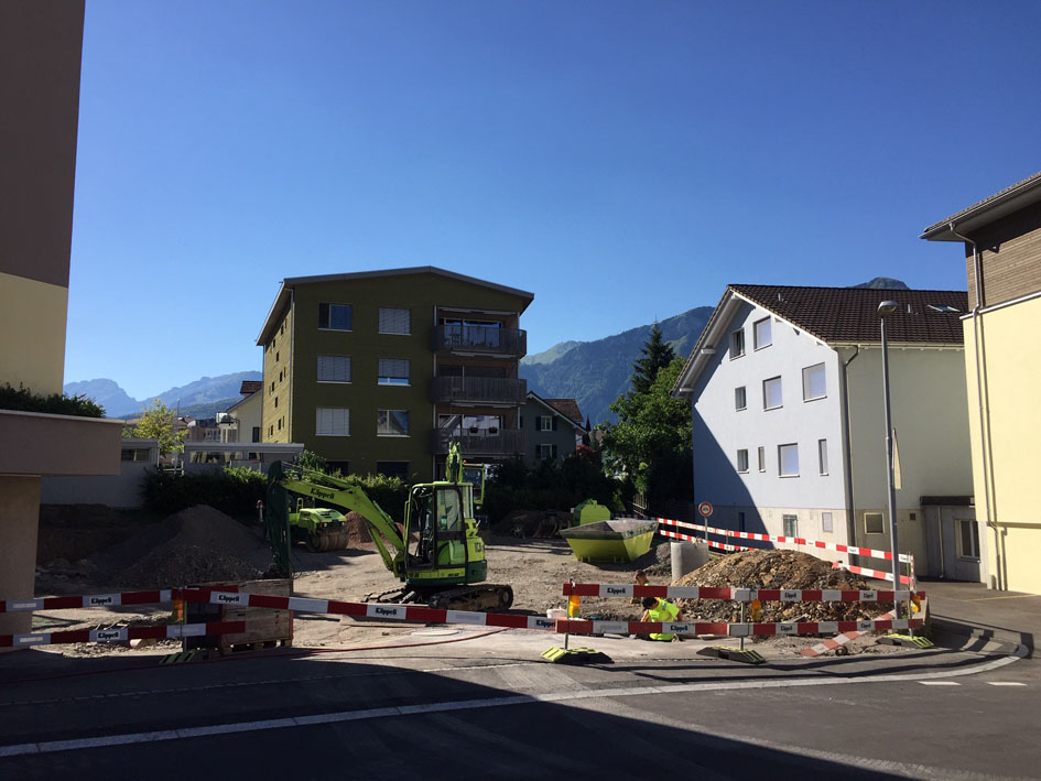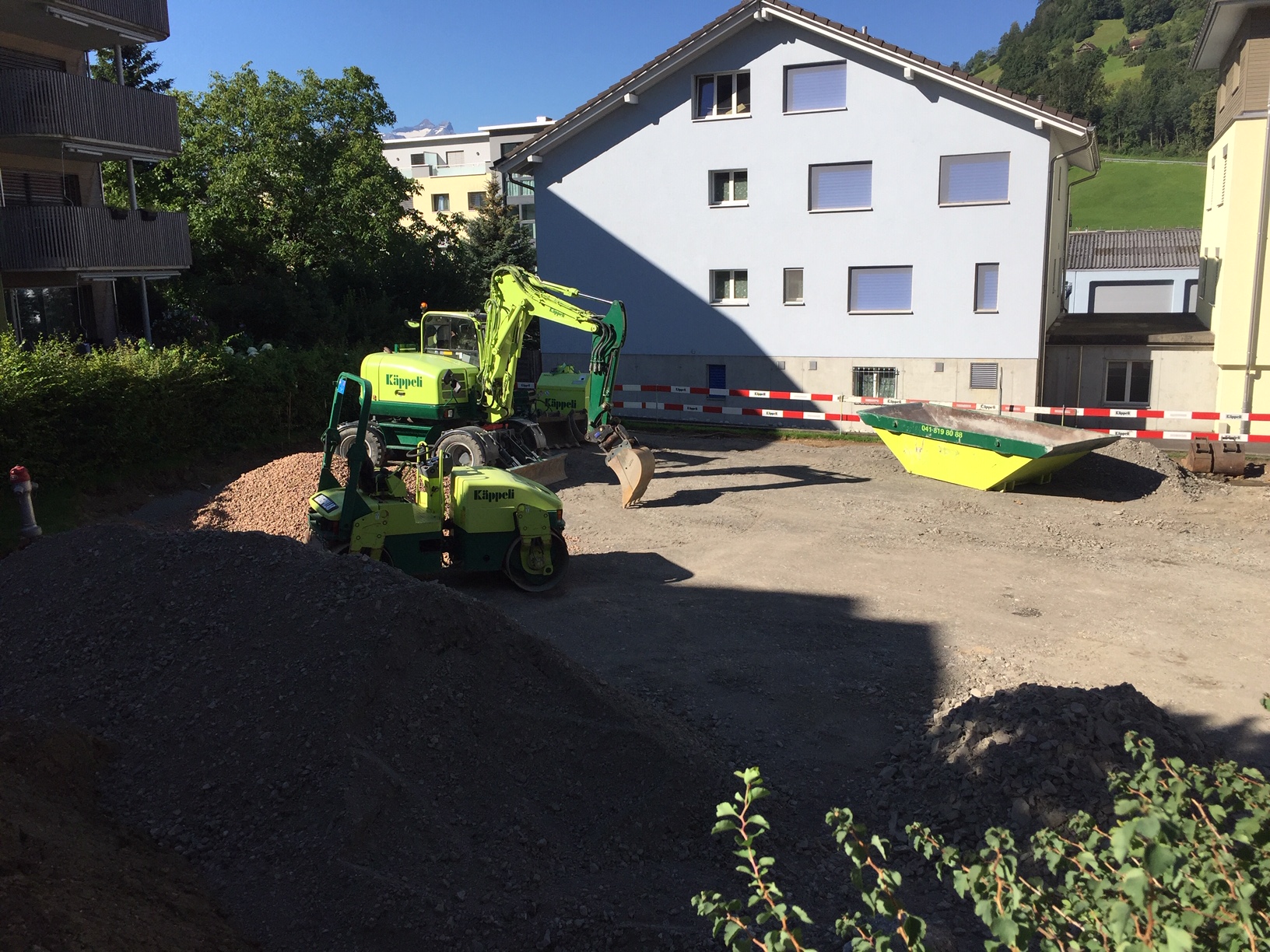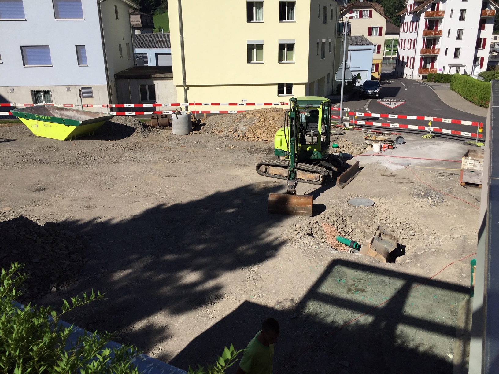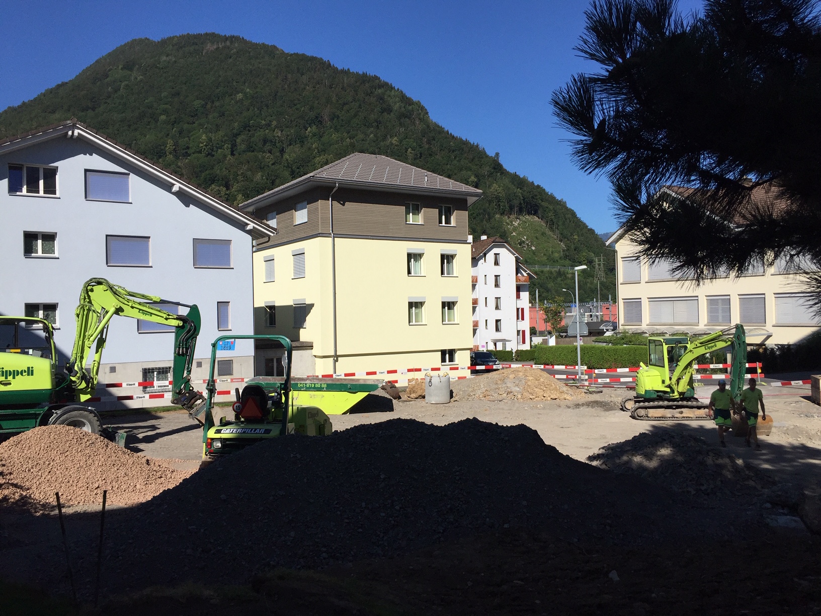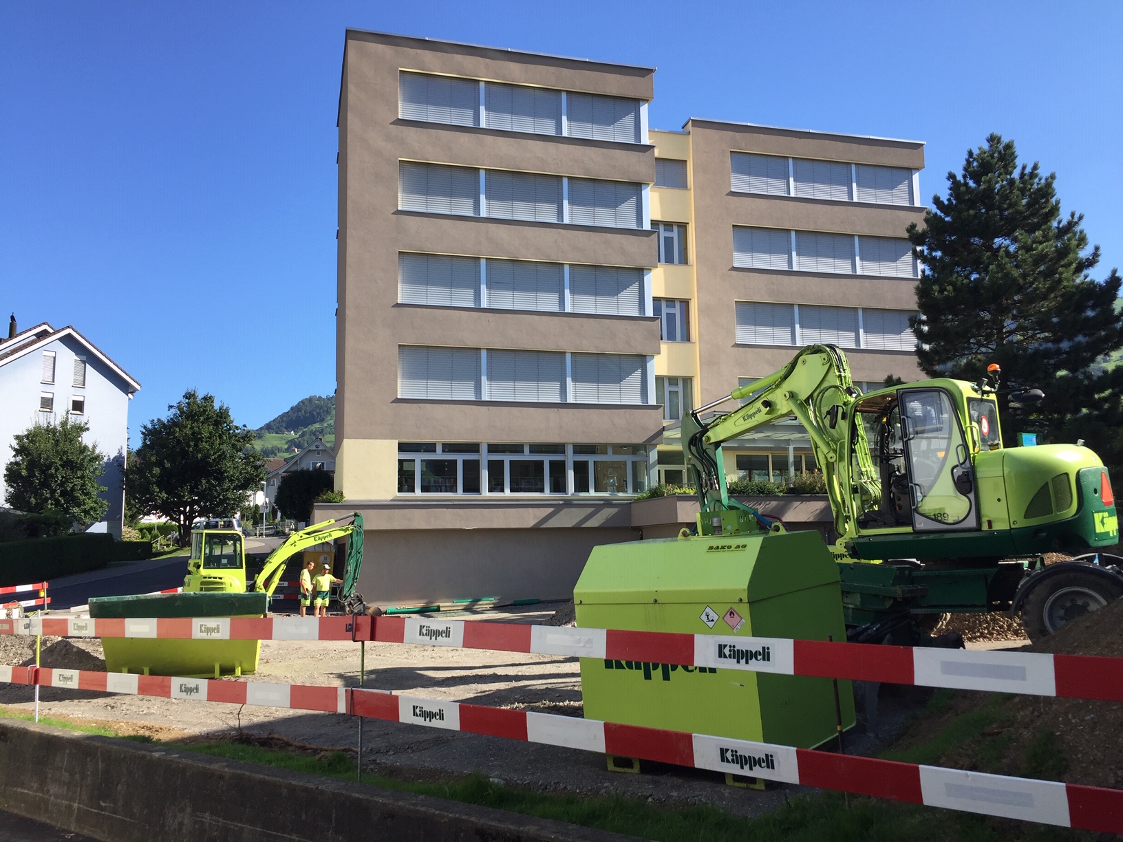 p. Von langer Hand geplant ist die aktuell angelaufene Sanierung der Umgebung des Schulhauses ‘Krummfeld’. Auslöser war das Alter der verschiedenen Elemente ums Schulhaus wie die Spielplätze und Veloständer. Im vergangenen April wurden die Erneuerungspläne schön ordentlich im Amtsblatt publiziert. Weil es dagegen keine Einsprachen gab, durften dieser Tage die Baumaschinen auffahren. Ein Augenschein vor Ort zeigt die zurzeit ‘überstellte’ Anlage rund ums Schulhaus ‘Krummfeld’: