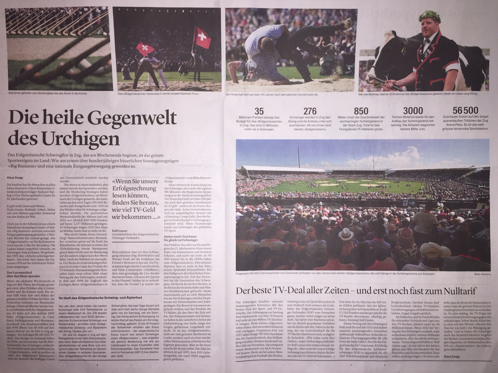 p. Es wird ein Fest der Superlative, das Eidgenössische Schwing- und Aelperfest am kommenden Wochenende, das vor der Toren der Stadt Zug durchgeführt wird. Hunderttausende Besucherinnen und Besucher aus der ganzen Schweiz werden live vor Ort oder irgendwo vor einem TV-Gerät mitfiebern, wenn die ‘Bösen’ aufeinanderstossen und unter sich einen König ausmachen. Im Gegensatz zu anderen Eidgenössischen wird heuer kein Seebner Schwinger aktiv im Sägemehl stehen. Vorbei die Zeiten, als die Herren Auf der Maur, Laimbacher und Co die Feste mitprägten…
