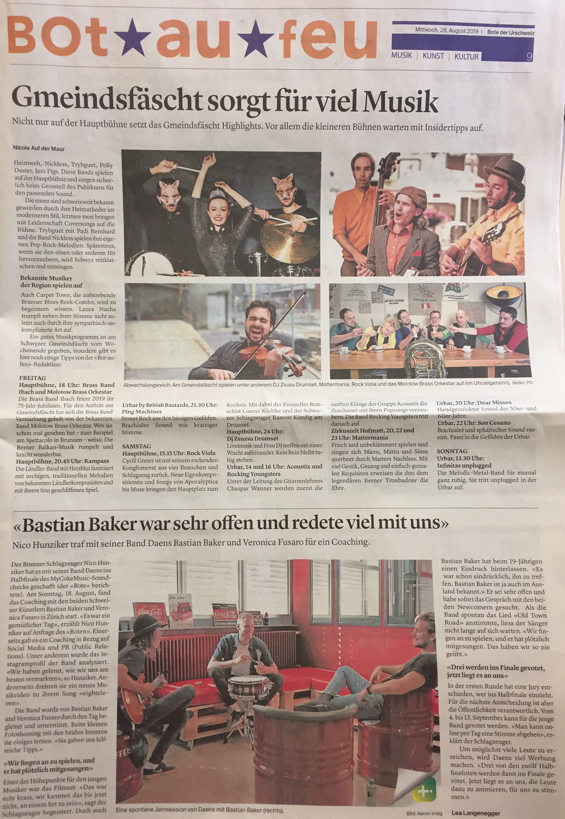 Im ‘Bote der Urschweiz’ vom 19. August 2019 ist u.a. eine weitere Vorschau zum grossen Fest vom 23. bis 25. August 2019 abgedruckt: