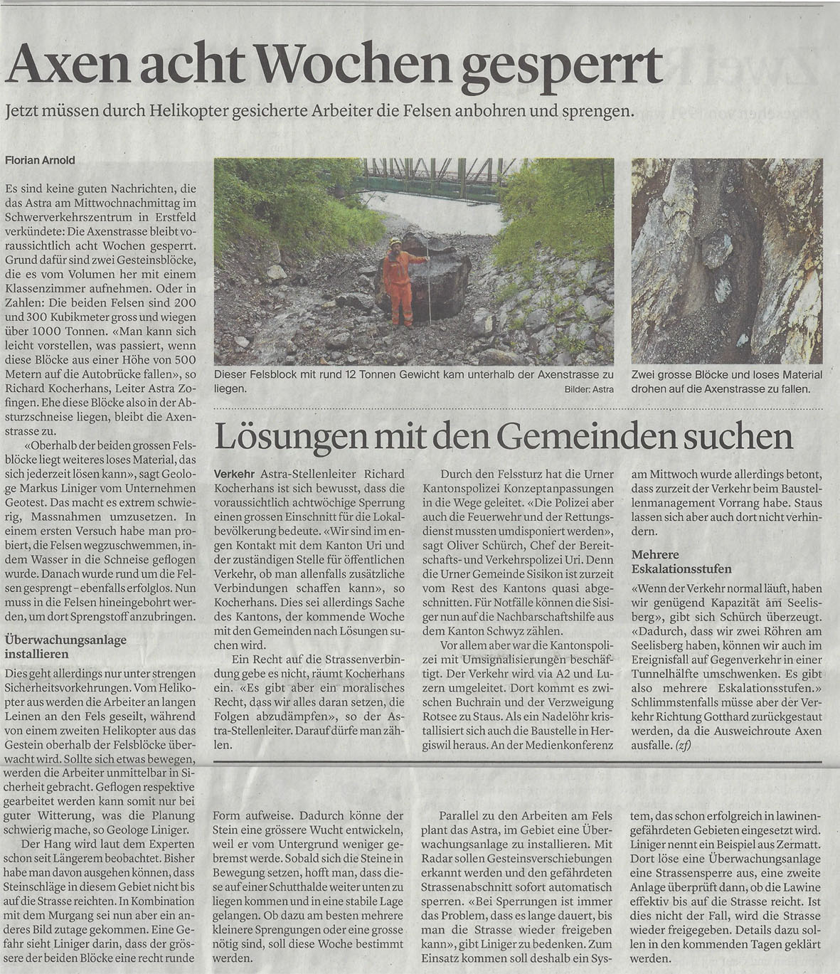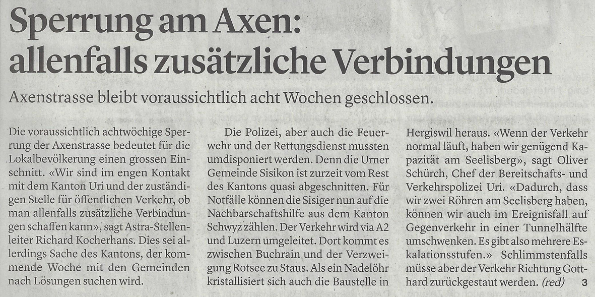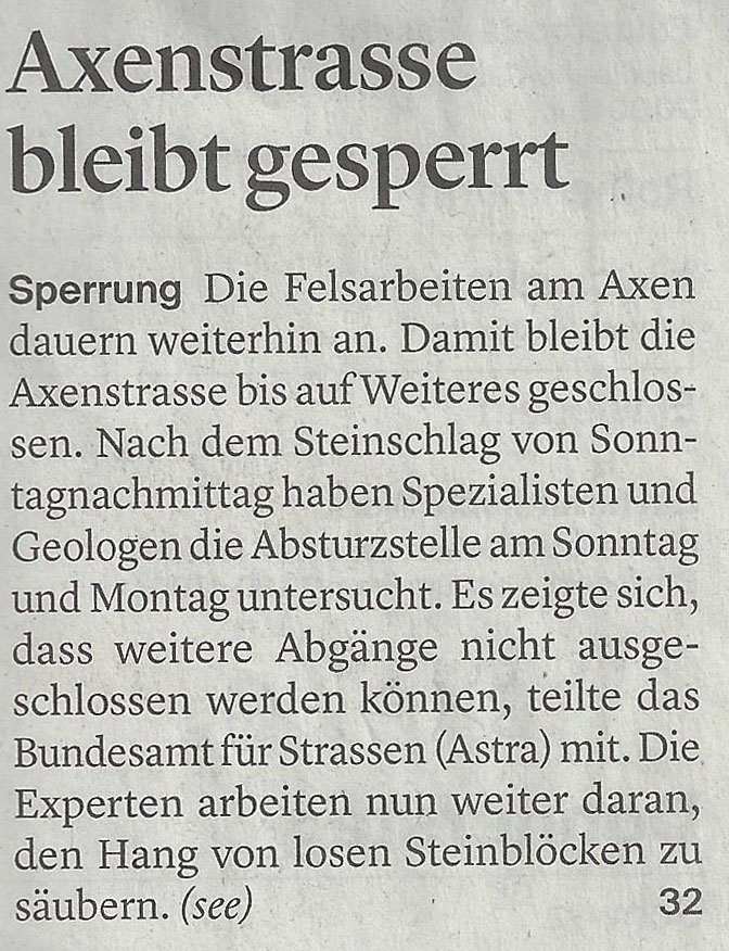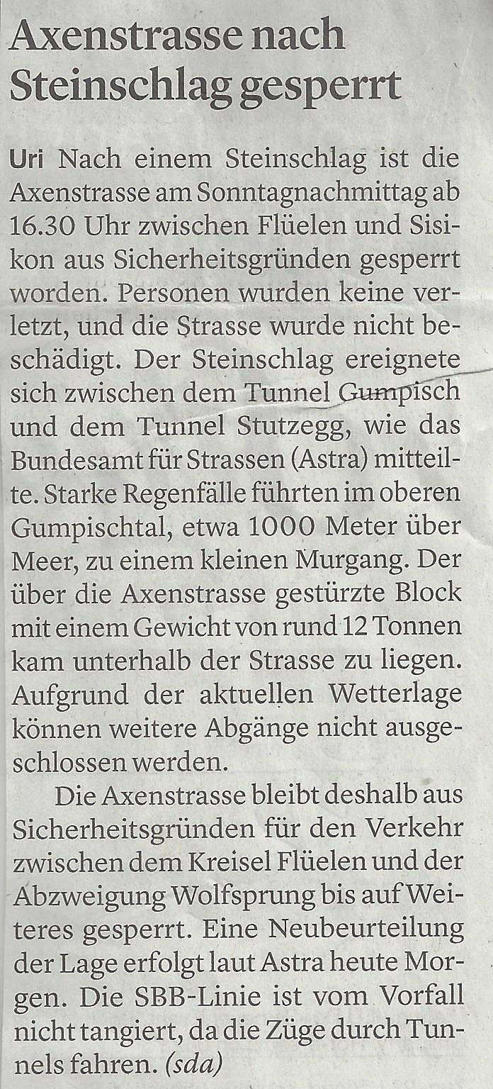 Nachstehend eine Fülle Informationen zur totalen ‘Axen-Sperre’, alle entnommen aus dem ‘Bote der Urschweiz’: