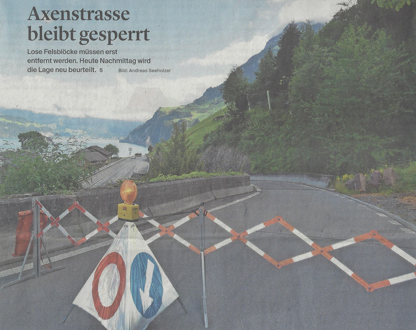 Seit Tagen sorgt die komplette Sperrung des ‘Axen’ für jeglichen Fahrzeugverkehr für Gesprächsstoff – auch im Schwyzerland! Es fehlen Tagestouristen bzw. -gäste.