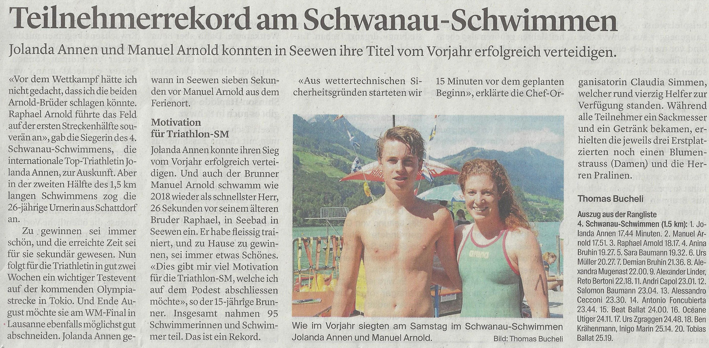 Im 'Bote der Urschweiz' wurden die Gewinner des heurigen Schwanau-Schwimmens aufgelistet:
