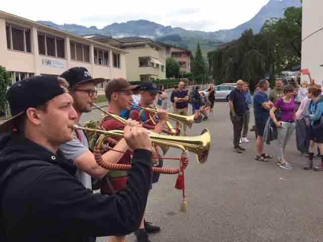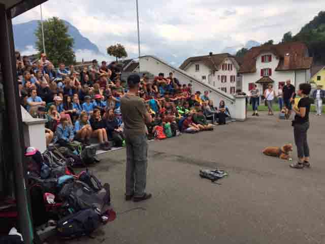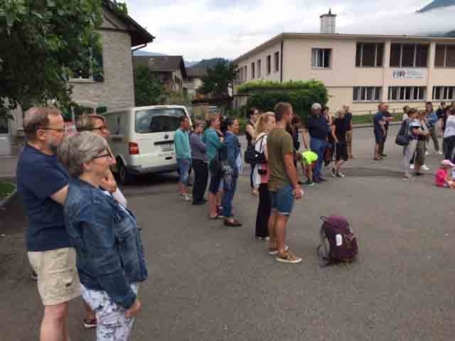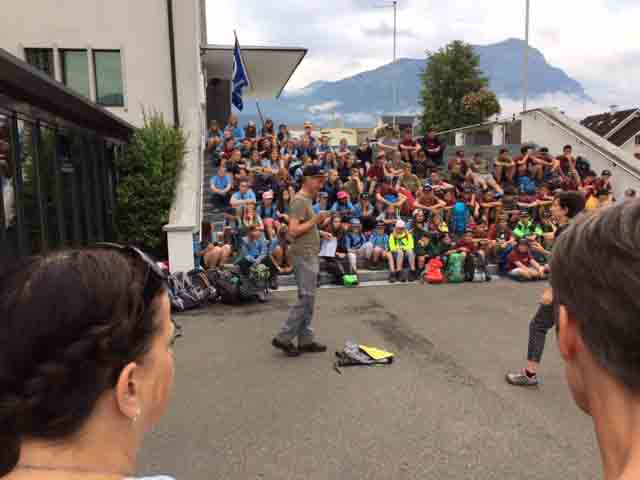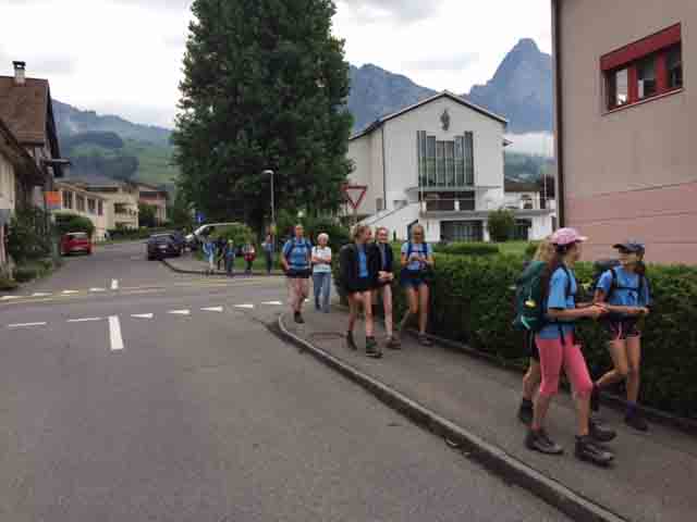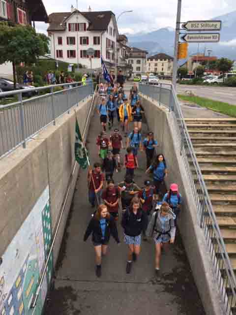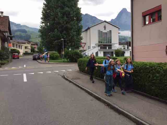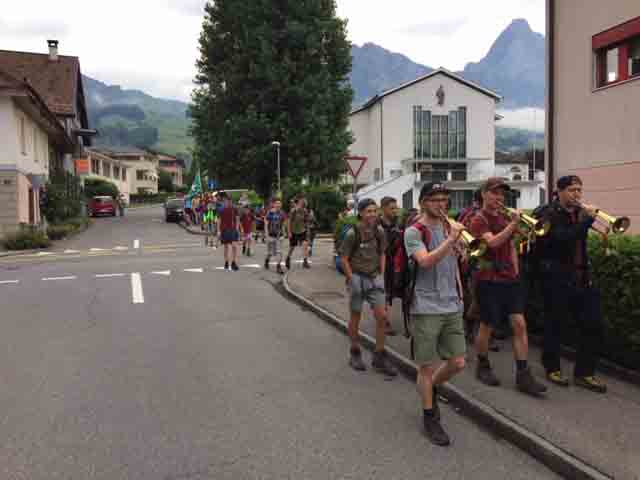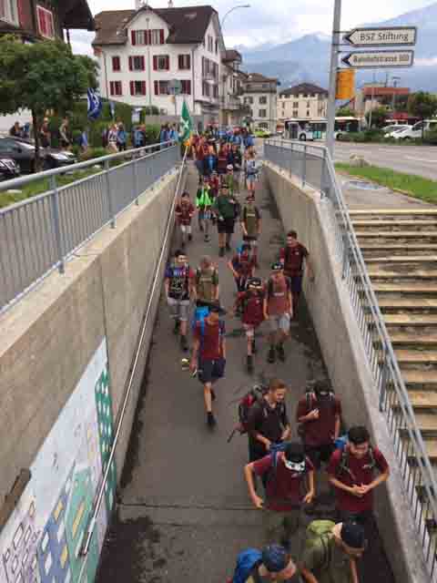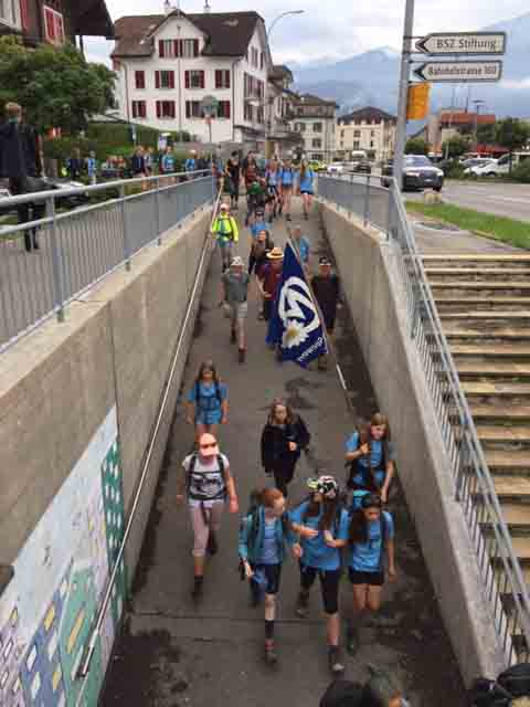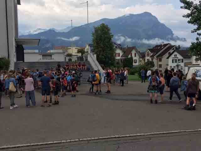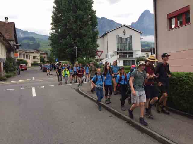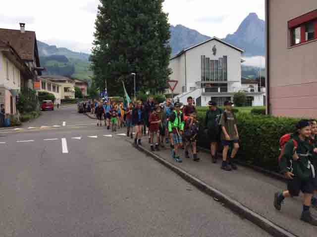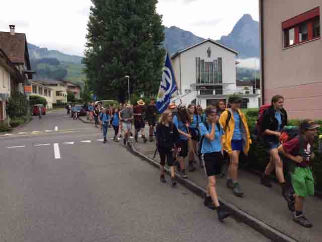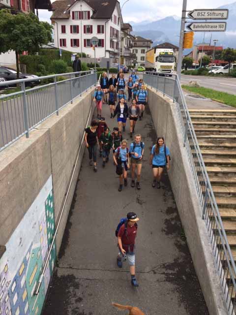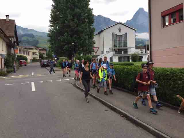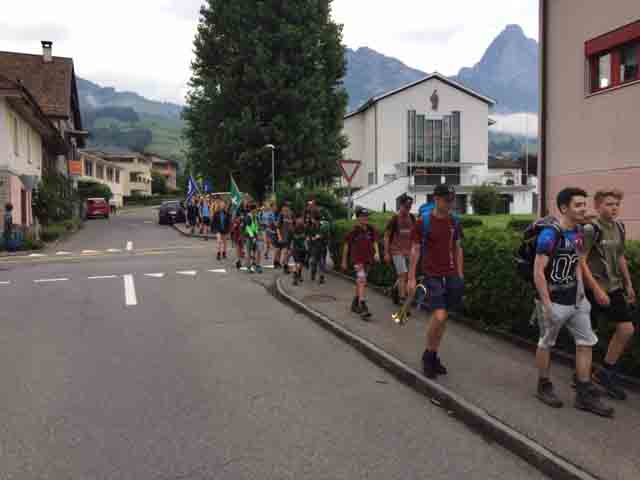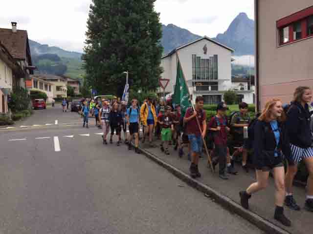 p. Bei trockener Witterung ist am Montag-Morgen (8. Juli) die Schar Seebner Jungwächter und Blauring-‘Meitli’ ins diesjährige Sommerlager nach Lostorf verreist. Die Lagerleitung zog schon Tage zuvor in die Ostschweiz, um den Lagerplatz einrichten zu helfen. Den Lagersegen hier in Seewen bekam die grosse Schar von Madeleine Annen Camenzind, die seit diesem Jahr als Präsis des Blauring Seewen amtet. Assistiert wurde sie dabei von Religionspädagoge Urs Betschart. Neu war heuer, dass der ganze Trupp den ersten Teil der Reise zu Fuss anging. Hierzu spazierten die grosse Gruppe entlang des Lauerzersees nach Goldau, um dort auf den Zug aufzusteigen. Grund hierfür war die Absicht der Kantonslager-Verantwortlichen, die Buben und Mädchen gestaffelt auf dem Platz in der Ostschweiz in Empfang nehmen zu können. Insgesamt werden nahezu 1500 Jugendliche aus den Kantonen Schwyz und Uri die Ostschweiz ‘verunsichern’.