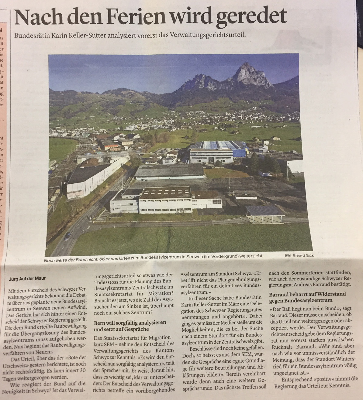Im ‘Bote der Urschweiz’ wurde in der Ausgabe vom 8. Juli 2019