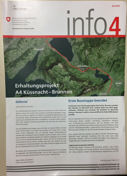 Das Bundesamt für Strassen ASTRA informiert die Bevölkerung mittels eines Info-Blattes über die Baustelle ‘Autobahn A4’