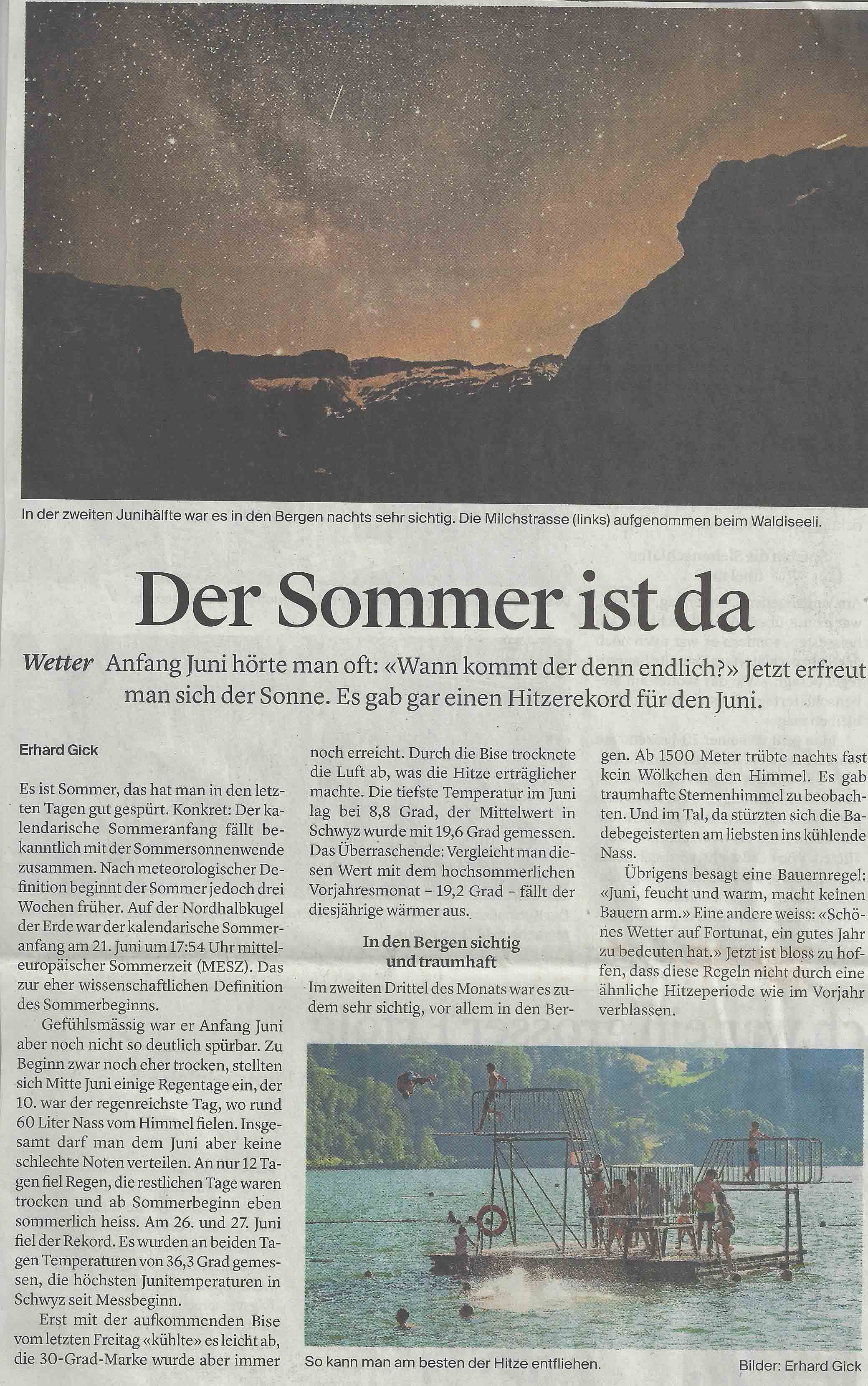 Das Kala verspricht mindestens wettertechnisch ein Erfolg zu werden. Jedenfalls liess sich der Vorsommer vielversprechend an, wie der ‘Bote’ am 1. Juli zu berichten wusste: