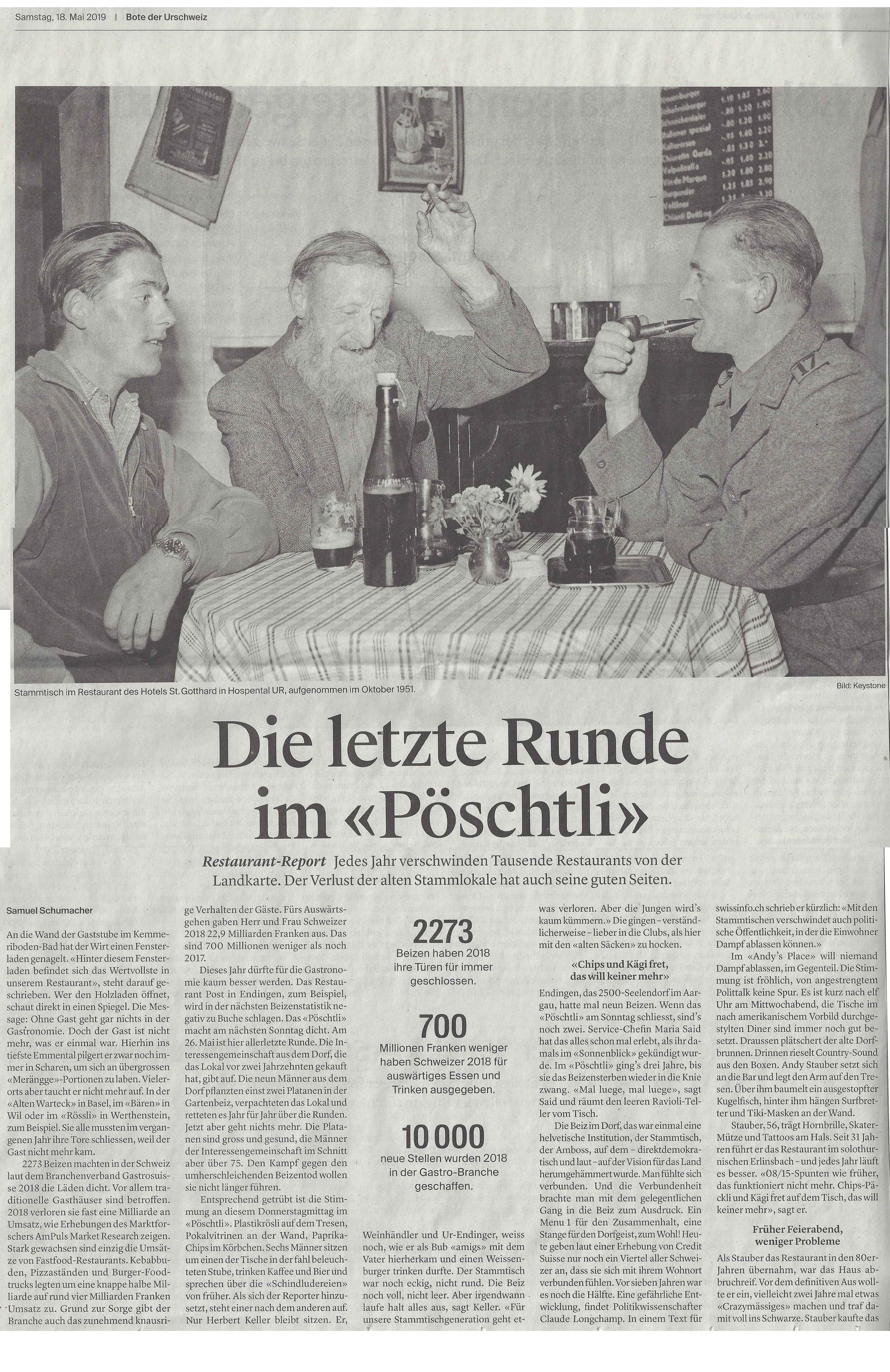 Im ‘Bote der Urschweiz’ wurde am 18. Mai 2019 ein entsprechender Artikel über die Situation in der Schweizer Gastronomie abgedruckt: