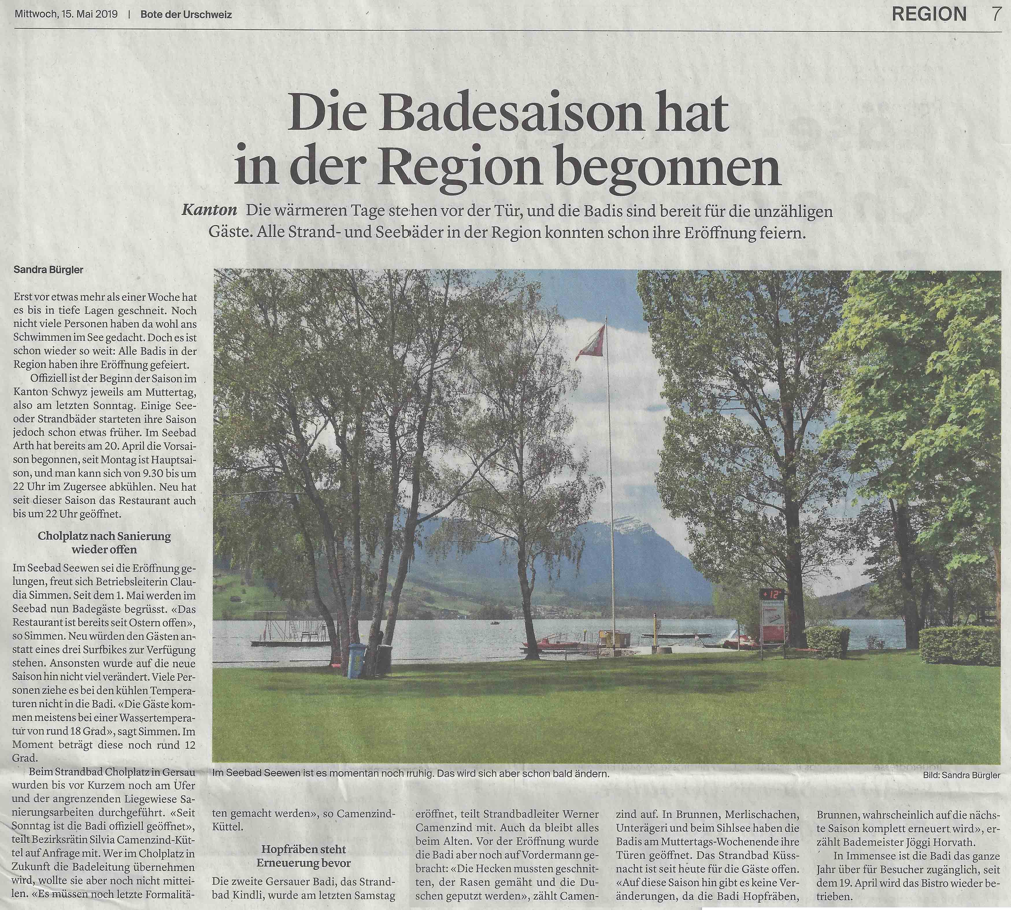 Nachstehend ein Bericht des ‘Bote der Urschweiz’ über die anstehende Saison in den verschiedenen Badi-Anlagen der Urschweiz: