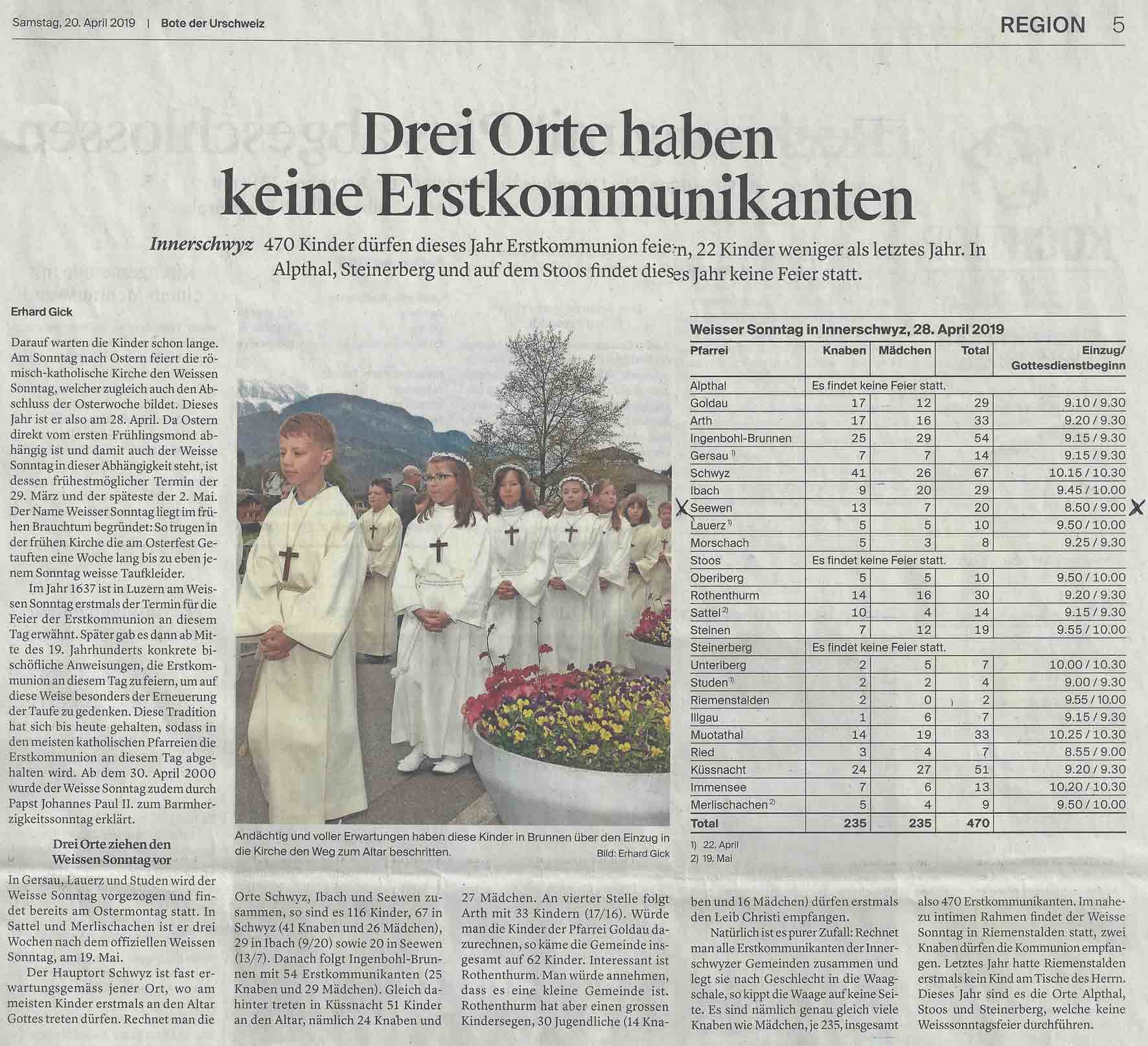 25.04.2019 Der 'Weisse Sonntag' 2019 in Seewen