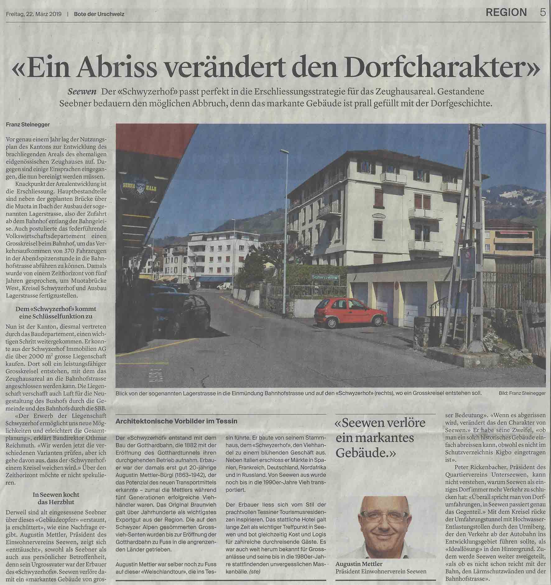 Nachstehend die Hiobsmeldung aus dem ‘Bote der Urschweiz’ vom 22.3.2019: