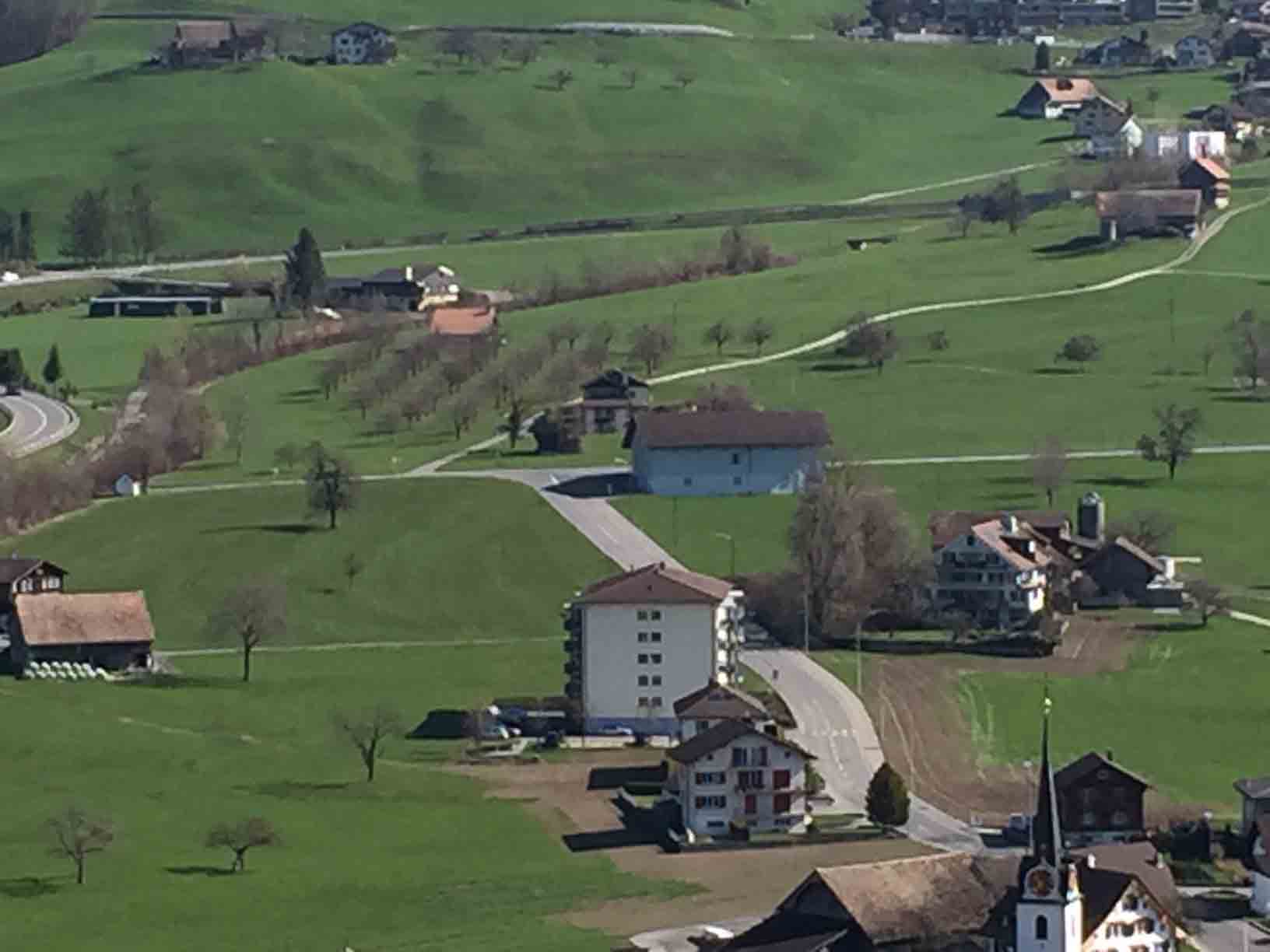 Prägen das (jüngere) Dorfbild bzw. stellen Dorfgeschichte dar: der ‘Schwyzerhof’ (links) sowie das Bahnhofgebäude (rechts). Genau in der Mitte soll ein Grosskreisel geschaffen werden. Doch noch sind seeeehr viele Fragen offen. Unklar beispielsweise ist, wie der ganze Langsamverkehr (vor allem Fussgänger) von Oberseewen zum und vom Bahnhof geführt werden soll. Nur schon diese Frage zog viele Einsprachen nach sich…