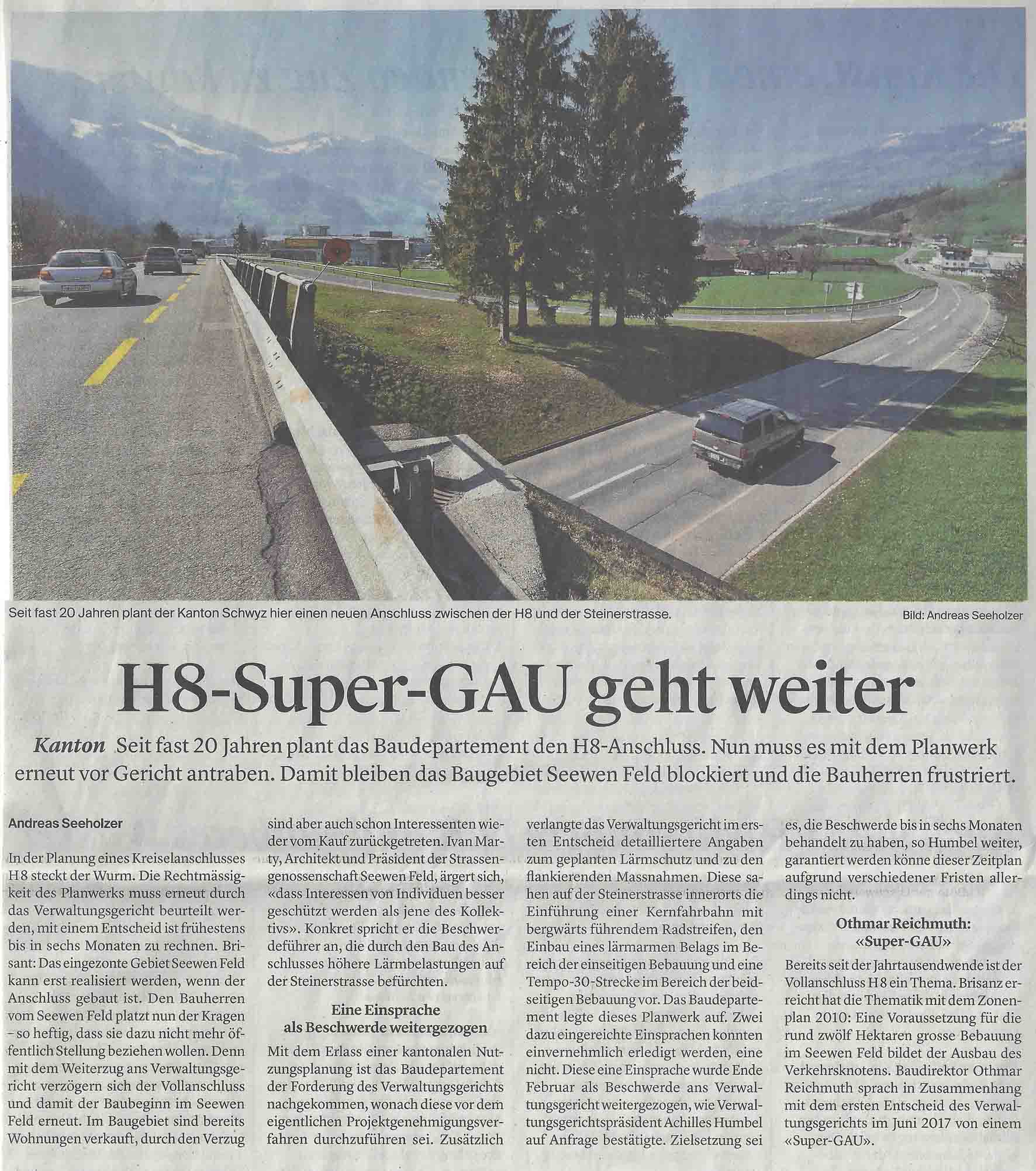 Wieder muss das Verwaltungsgericht darüber befinden, ob das Planwerk H8-Anschluss in Seewen rechtmässig ist