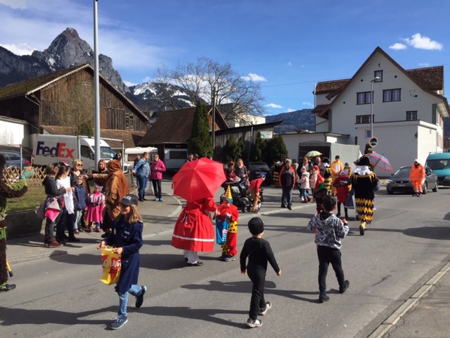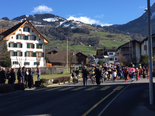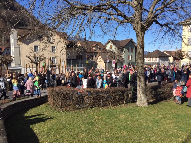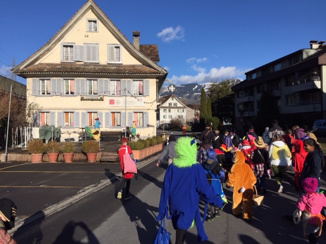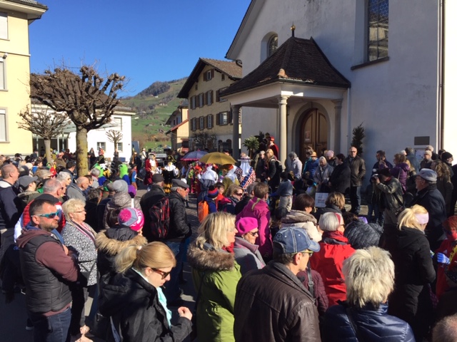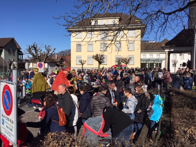 Als Höhepunkt des närrischen Treibens galt das Zusammengehen aller Maschgraden um Mitternacht auf dem Areal des Schulhauses ‘Seerüti’, wo u.a. im eigens aufgestellten Partyzelt bis in die frühen Morgenstunden weitergefeiert wurde…