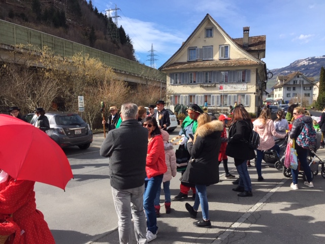 p. Vor 19 Jahren aus der Taufe gehoben nimmt die ‚Abigrott Seebä‘ eine wichtige Rolle im Fasnachtskalender von Addis-a-Seeba ein. Wen wunderts, dass viele Maschgraden und Freunde der 5. Jahreszeit sich schon Monate zuvor in Schankhäusern Plätze reservieren, um ganz sicher an vorderster Front dabei zu sein, wenn’s «los gahd»? So war es am Samstag wieder einmal der Fall: bestgelaunte Menschen hüben wie drüben partizipierten am Event der Nüssler bei frühlingshaften Temperaturen im zweistelligen Celsiusbereich. Nebst den Mitgliedern der Seebner Nüssler-Rott zirkulierten auf Einladung auch zahlreiche Maschgraden der Güdelmontags-Rott aus dem Hauptort in der Filiale. Aufgemischt wurde das kunterbunte Treiben zusätzlich von ‘wilden’ Gruppen, die in allerlei Berufs- und Themenkleidern eine ‘gute Figur’ machten.