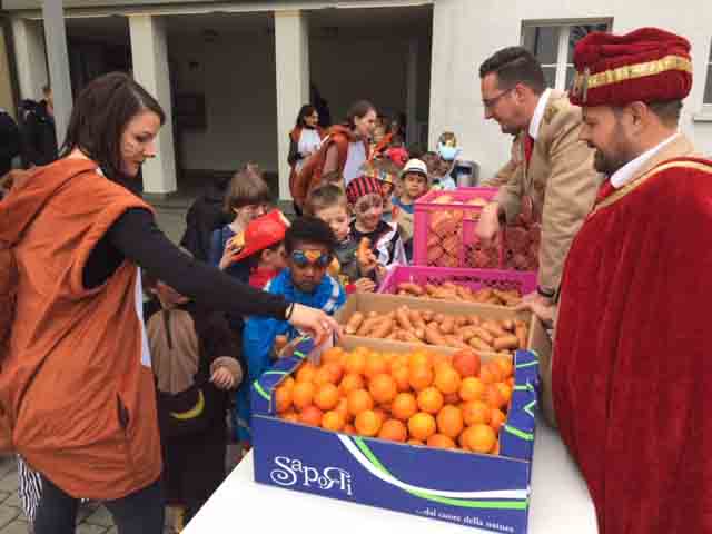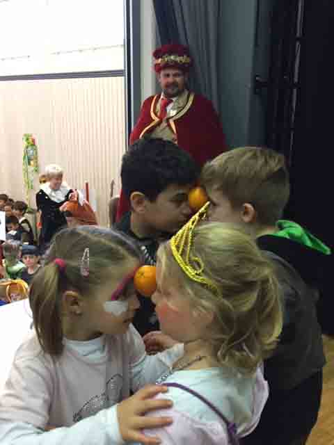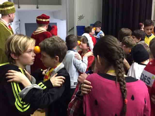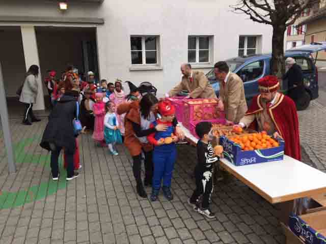 p. Darauf freuen sich Kinder Jahr für Jahr besonders: die Schulfasnacht. Sie findet landauf und landab statt und hat überall ihre Anhänger – so auch in Addis-a-Seeba, wo am Freitag (22. Februar) dieser hohe Tag angesagt war. Ueber 200 Kinder und gegen drei Dutzend Lehrpersonen feierten auf dem Areal des Schulhauses ‚Seerüti‘ einen ausgelassenen Fasnachtsevent. Den Auftakt dazu machte punkt acht Uhr morgens eine Lehrer-Rott. Diese – alle in den Original-Gwändli – zog zum bereits fünften Mal mit Start beim Schulhaus ‚Krummfeld‘ eine Quartier-Schlaufe. Wenig später ging der Fasnachts-Spass weiter im Schulhaus ‚Seerüti‘, wo ein Atelierbetrieb mit allerlei unterhaltsamen Spielen anstelle strenger Lehrpersonen auf die kleinen Maschgrädli wartete. Kurz vor Mittag versammelte sich die ganze bunte Schar in der nebenstehenden Halle der ‚alten Universität‘, wo auch Eltern zugegen waren. Ein Highlight war der Besuch des Negus Negesti XXXXI. Daniele der Kaltgepresste, der mit einer Delegation seines Ras-Kollegiums die Kinder (und auch Erwachsenen!) erfreute. Der Kanzler forderte die Anwesenden auf, aktiv den Fasnachtsanlässen beizuwohnen und die Tradition hochzuhalten. Bevor es zur obligaten Wurst, Brot und Orangen-Abgabe vor dem Schulhaus ging, wurde ausgiebig dem Orangentanz gefrönt! Die Sieger erhielten ein süsses Geschenk.
