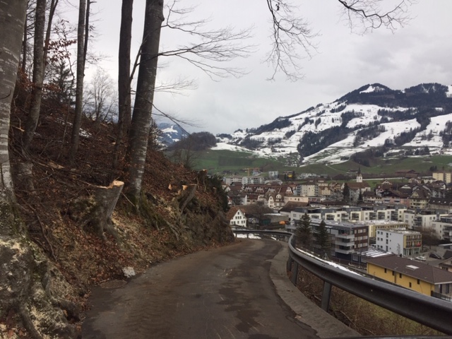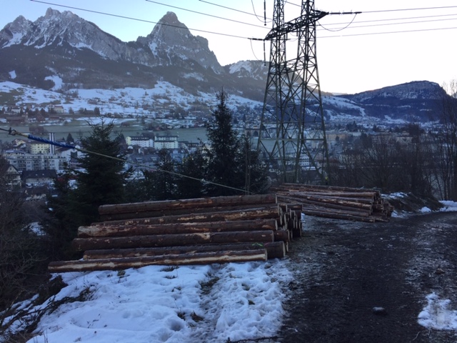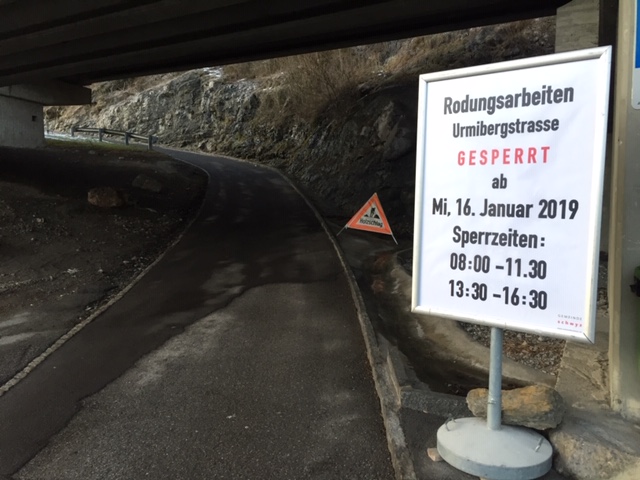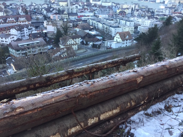 p. Sie hingen beängstigend auf die Urmibergstrasse hinein, zahlreiche stattliche Buchen, Eschen, Ahorn und Fichten. Jetzt sind sie nicht mehr, Forstarbeiter der OAK haben sie umgesägt. Seit Mitte Januar 2019 räumt die Korporation auf, was der letzte Herbststurm entlang der Urmibergflanke in Schieflage brachte. Denn die teils bereits geknickten und oftmals schon schräg stehenden Bäume stellten eine Gefahr für Fussgänger und Motorfahrzeuge dar. Hunderte Kubikmeter Holz wurden und werden immer noch fein säuberlich mithilfe modernster Technik aus dem Wald geholt und dann auf dem Gertenbannweg etwas oberhalb der Autobahn A4 für den Abtransport vorbereitet. Grosse Holzbeigen zeigen das Ausmass des Eingriffs in den Wald. Die Arbeiten können, wie vor Ort zu erfahren war, Ende Februar abgeschlossen werden.