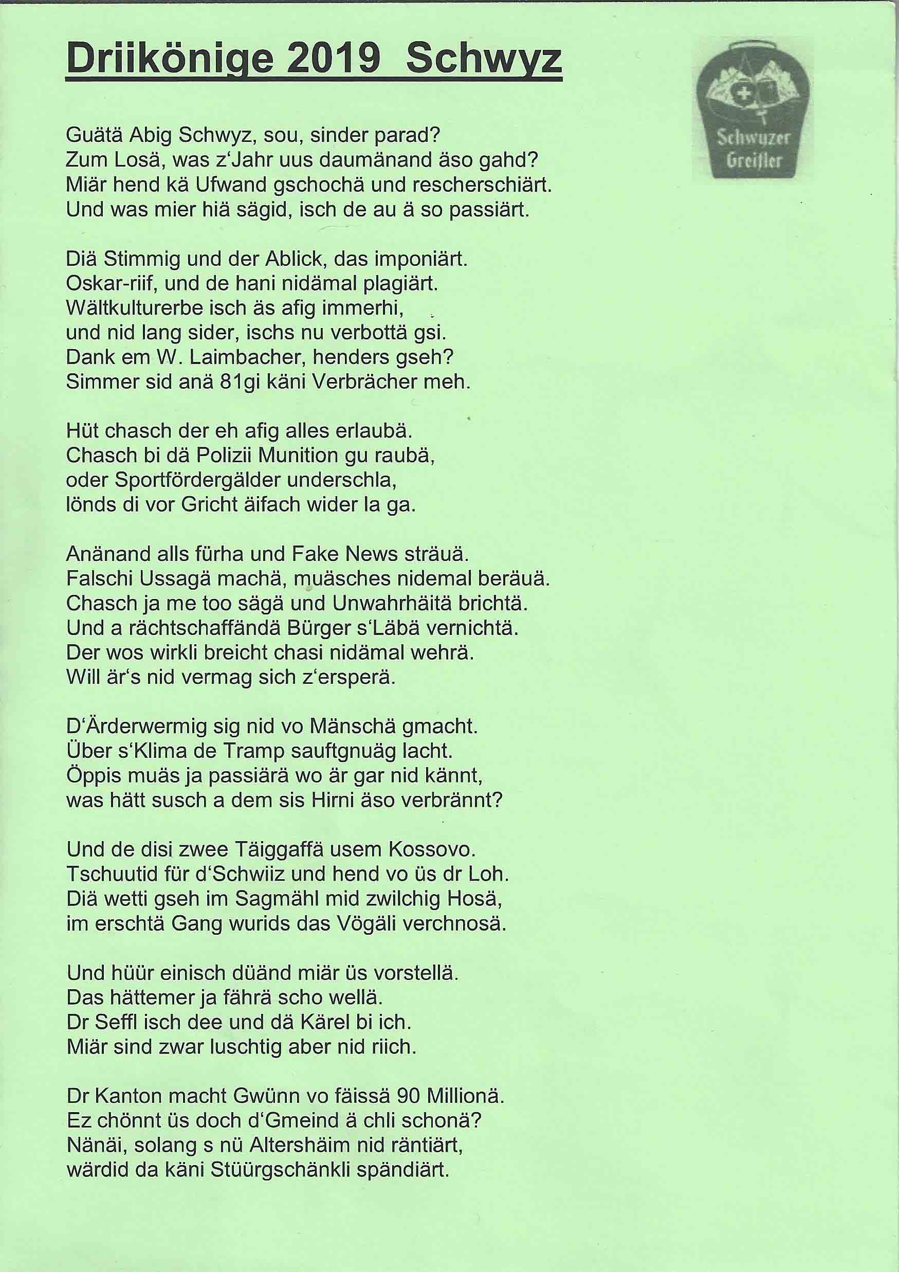 Nachstehend das ‚Driikönigsblättli 2019’: