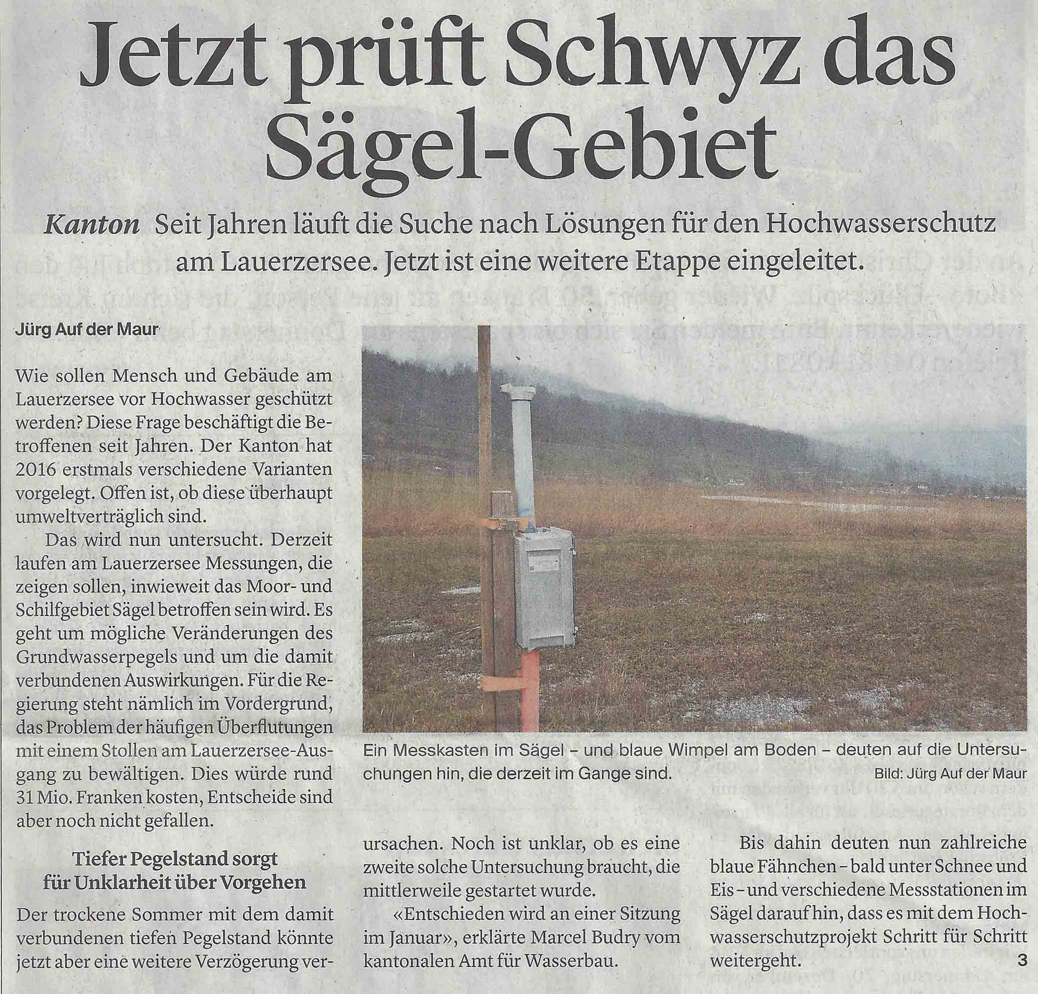 Der «Bote der Urschweiz» wusste in seiner Ausgabe vom 17.12.2018 über die Tätigkeiten im Sägel-Gebiet Folgendes zu berichten: