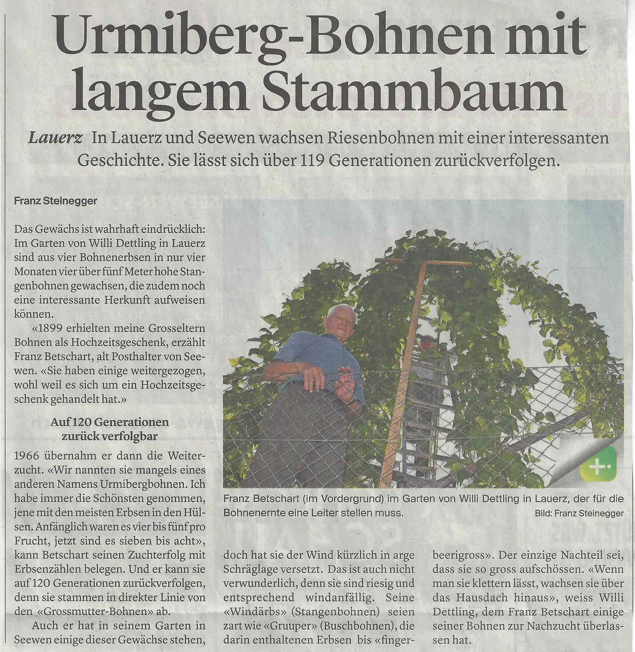 Spezielle Interessen, die sie nicht in Vereinen teilen können, die haben Franz Betschart und Margarita Skinner. Während Franz in seinem Garten ganz spezielle Bohnen hegt und pflegt, schreibt Margarita Bücher. Im ‚Bote der Urschweiz‘ wurden die zwei Mitbürger porträtiert: