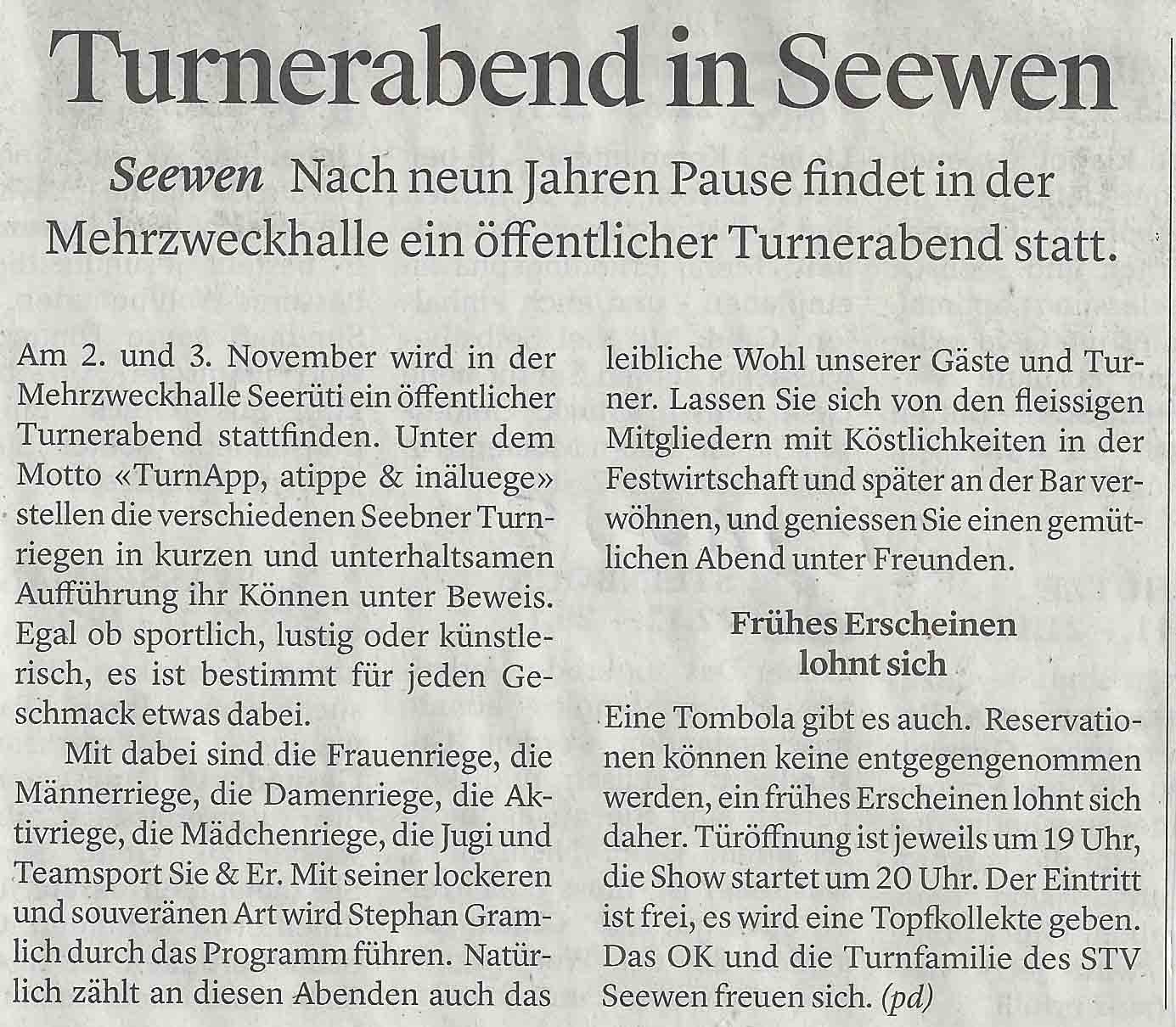 Im BOTE DER URSCHWEIZ vom 5.11.2018 wurde wie folgt über den Turnerabend berichtet: