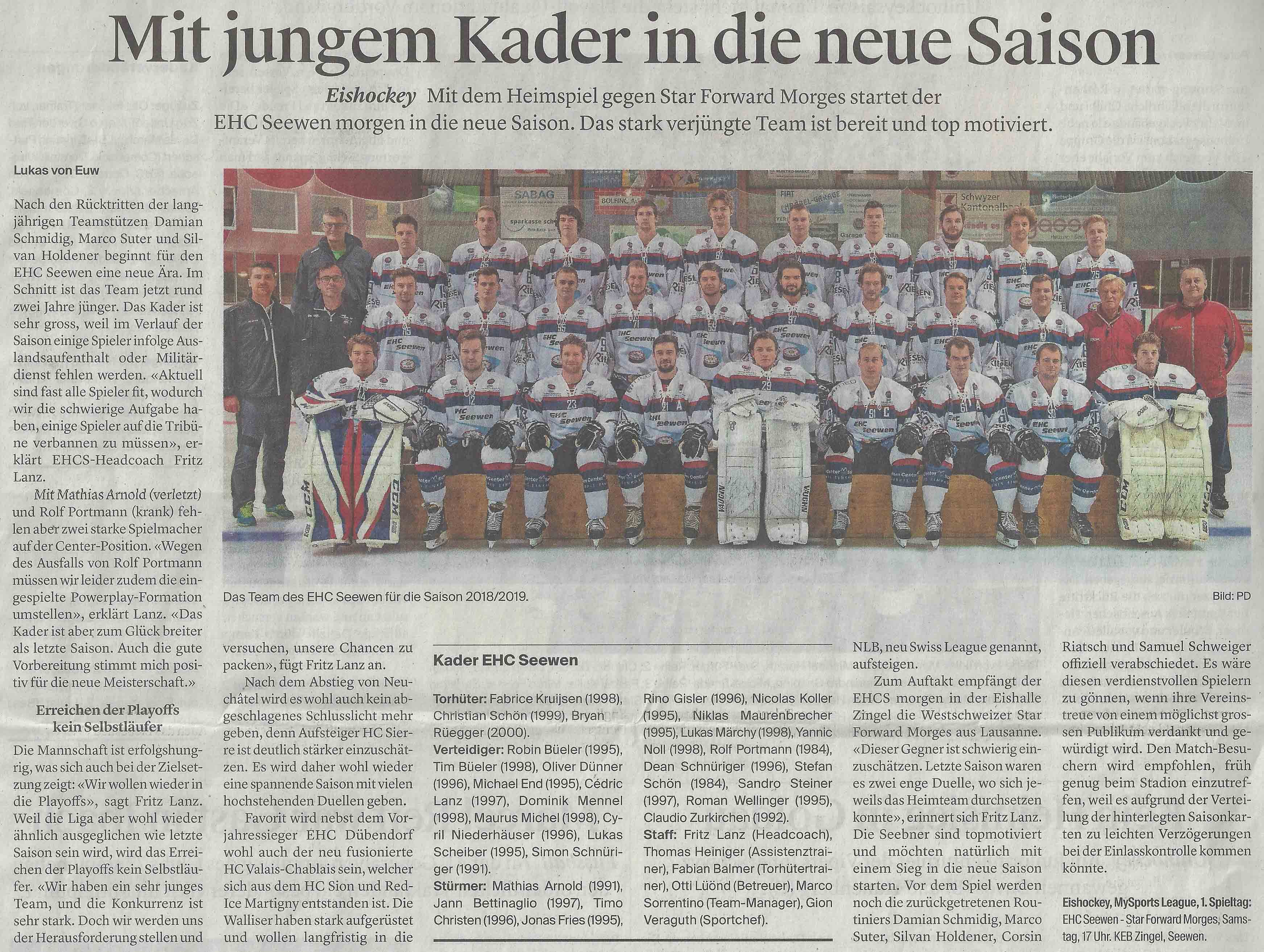 In einem ausführlichen Bericht tat EHC Seewen-Schreiberling Lukas von Euw einen Ausblick auf die anstehende Saison: