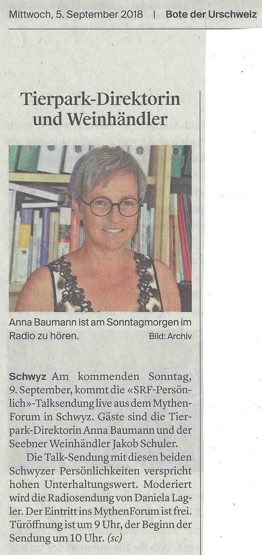 Nachstehend eine Vorschau zum ‘Talk’, publiziert im ‘Bote’ vom 5.9.2018: